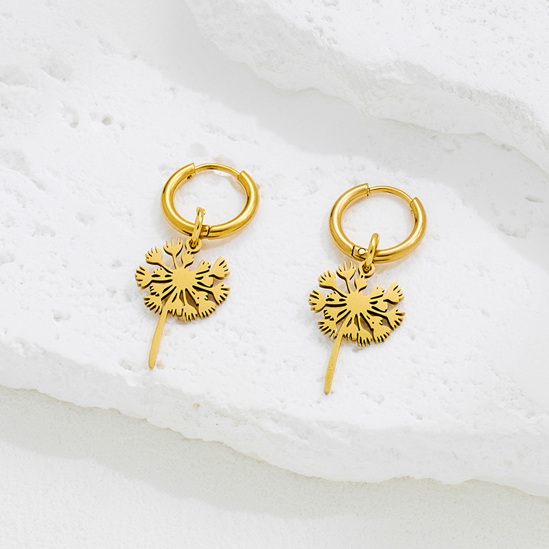 Boucle d'oreille en goutte de laiton, Acier inoxydable 304, Pissenlit, Placage, bijoux de mode, plus de couleurs à choisir, Vendu par paire
