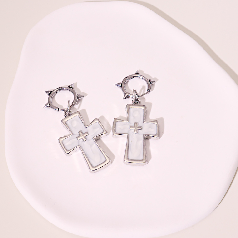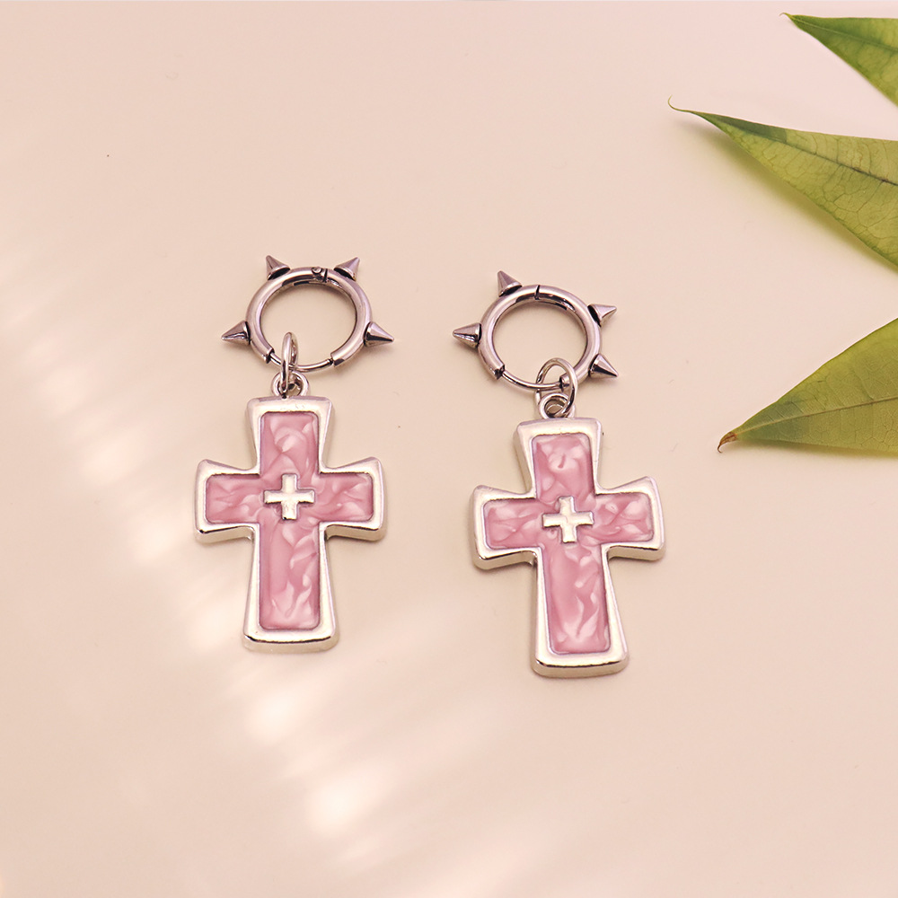 Boucle d'oreille goutte Zinc Alloy, alliage de zinc, croix, Placage de couleur d'or, bijoux de mode & émail, plus de couleurs à choisir, Vendu par paire