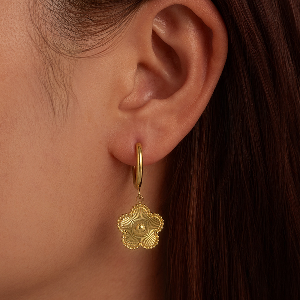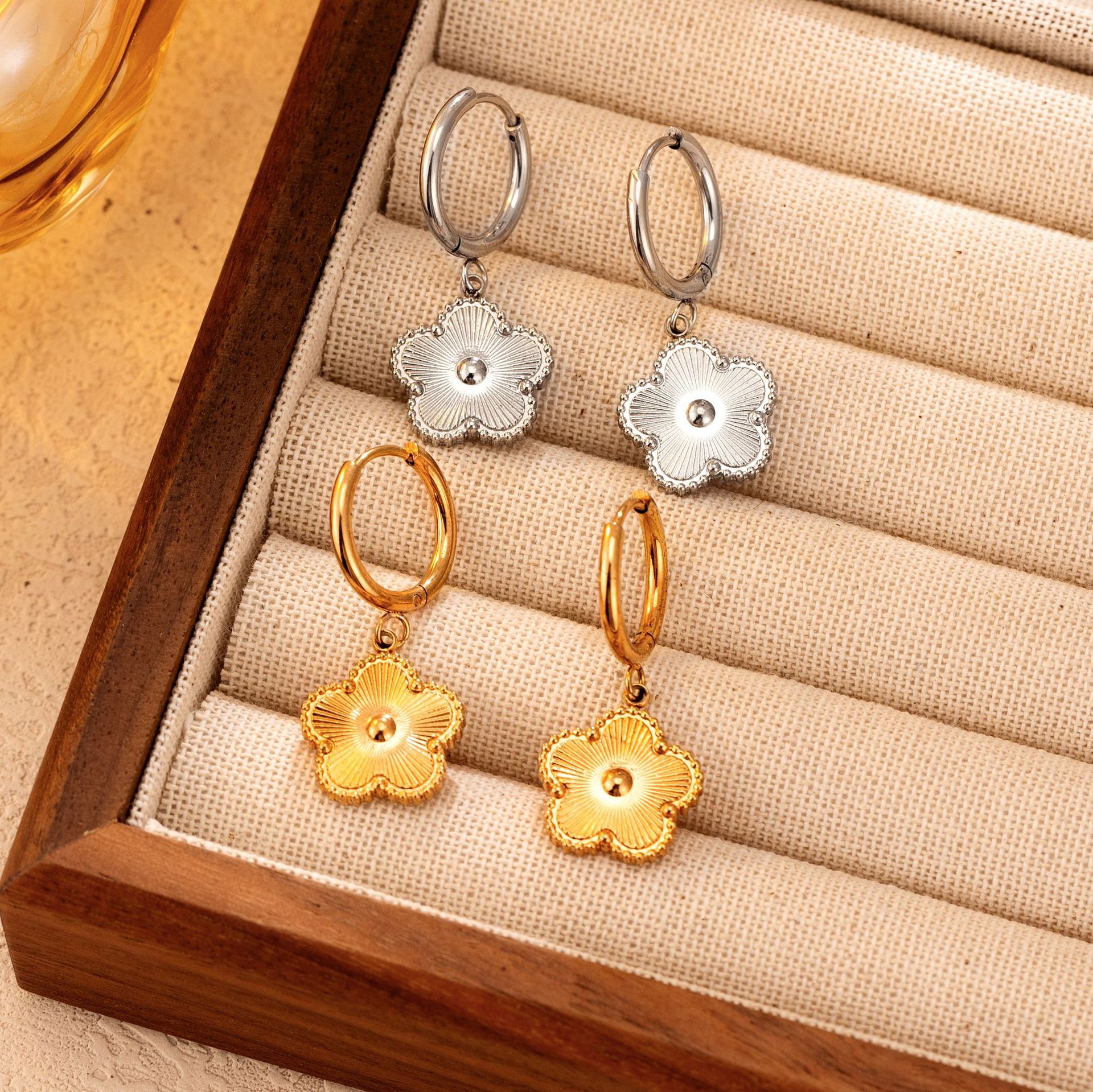Boucle d'oreille goutte inox, Acier inoxydable 304, fleur, Placage, bijoux de mode & pour femme, plus de couleurs à choisir, Vendu par paire