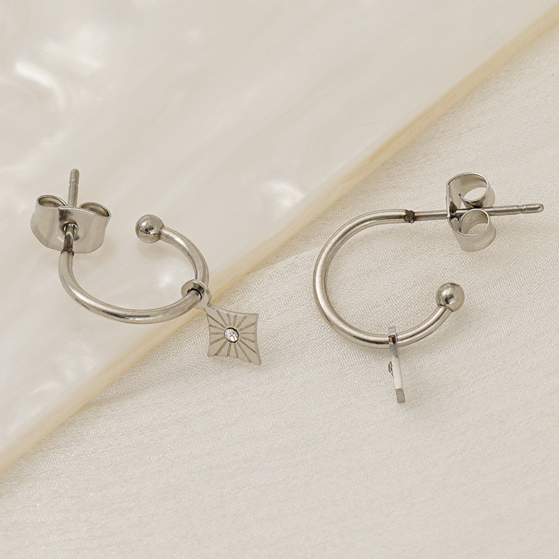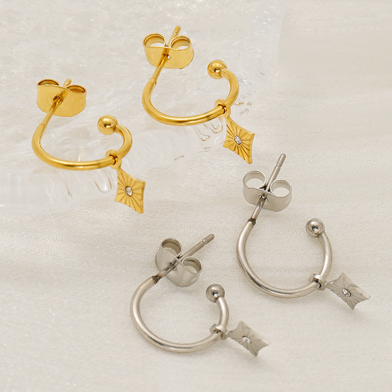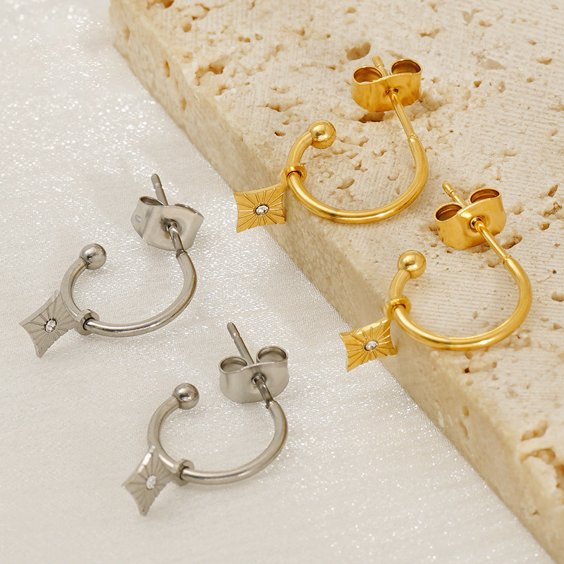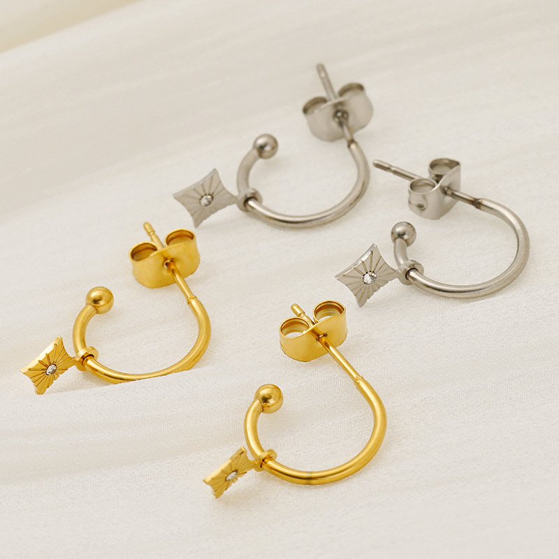Boucle d'oreille goutte inox, acier inoxydable, avec strass, couleur originale  0.8mm, Vendu par paire