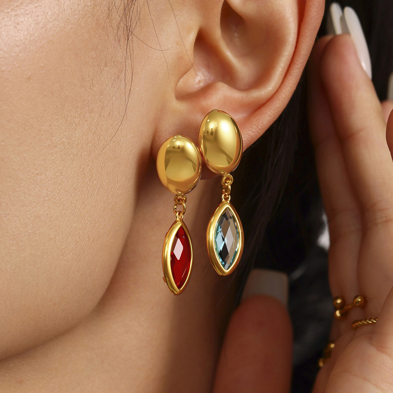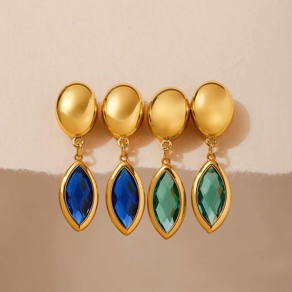 Boucle d'oreille goutte inox, Acier inoxydable 304, avec Pierre de verre, Plaqué or 18K, bijoux de mode & pour femme, plus de couleurs à choisir, Vendu par paire