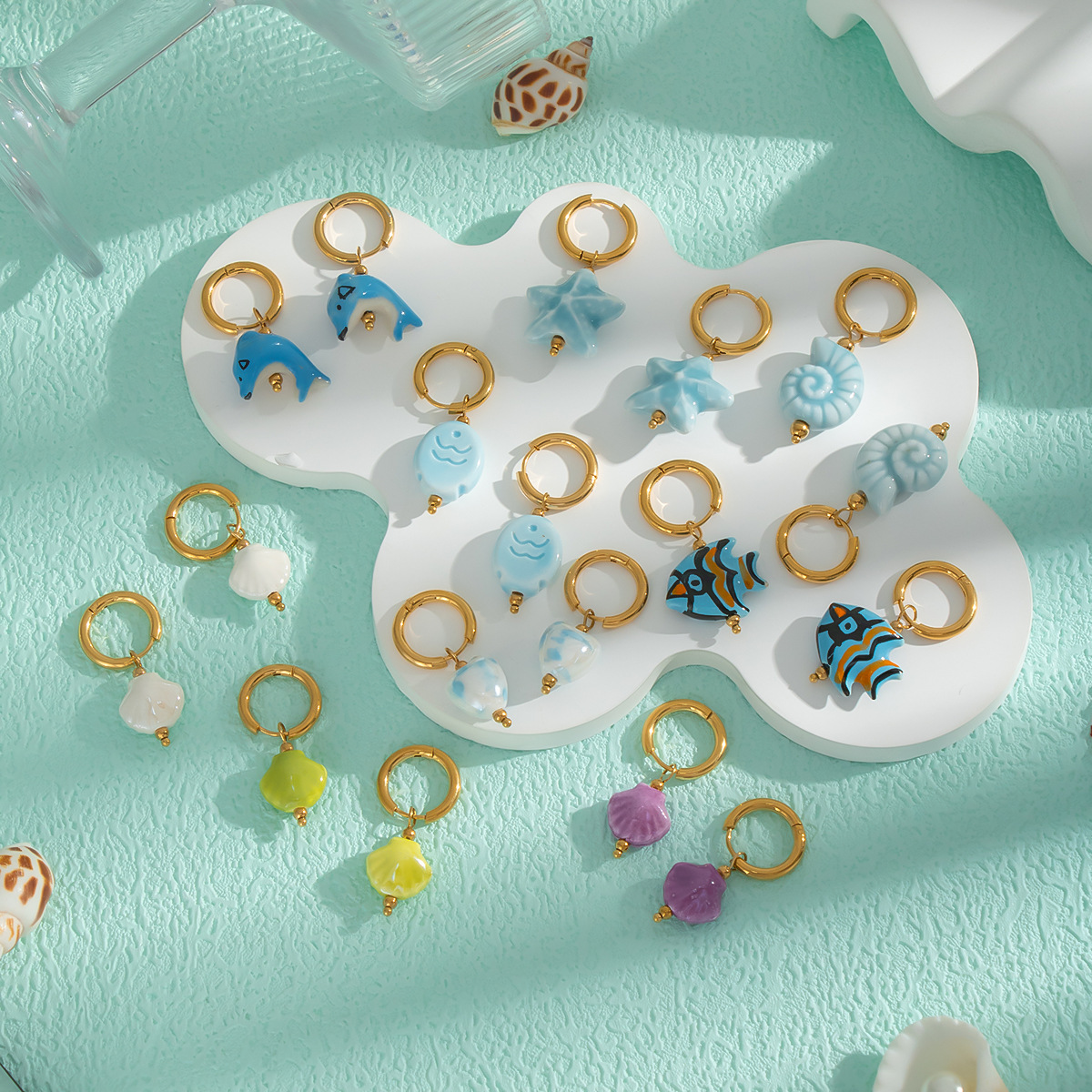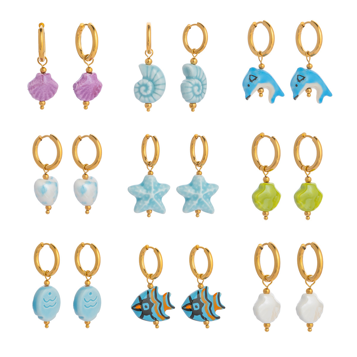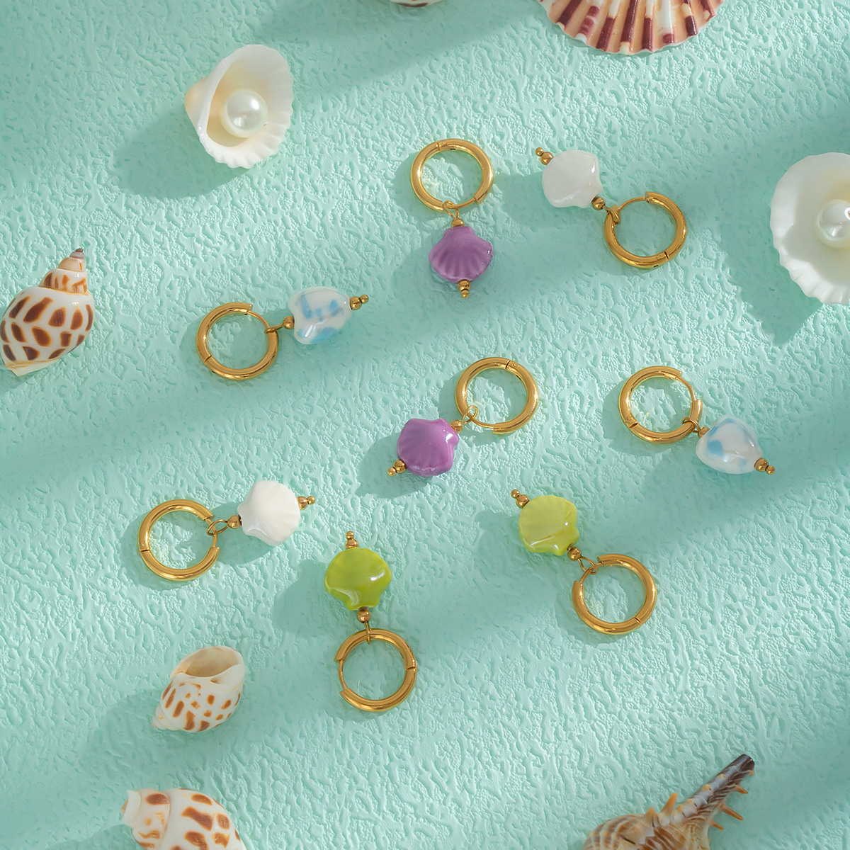 Boucle d'oreille goutte inox, Acier inoxydable 304, avec coquille, Placage de couleur d'or, bijoux de mode & émail, plus de couleurs à choisir, Vendu par paire