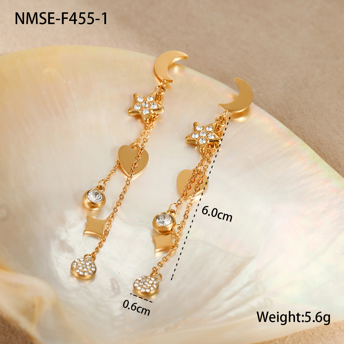 Boucle d'oreille goutte inox, acier inoxydable, avec strass, couleur originale  0.8mm, Vendu par paire