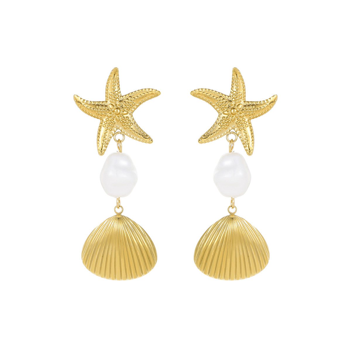Boucle d'oreille goutte inox, Acier inoxydable 304, avec perle de plastique, Plaqué or 18K, bijoux de mode & pour femme, Vendu par paire