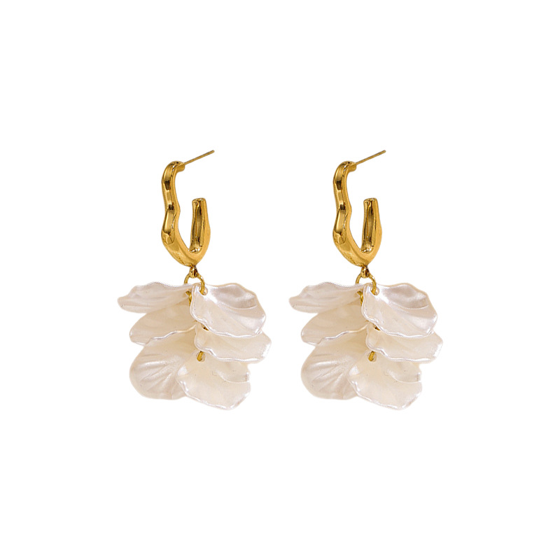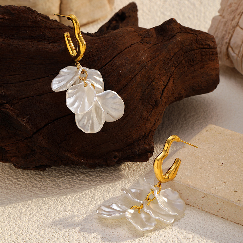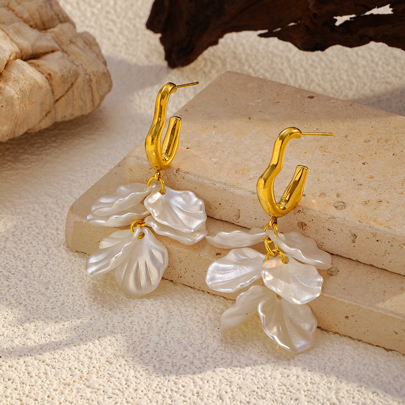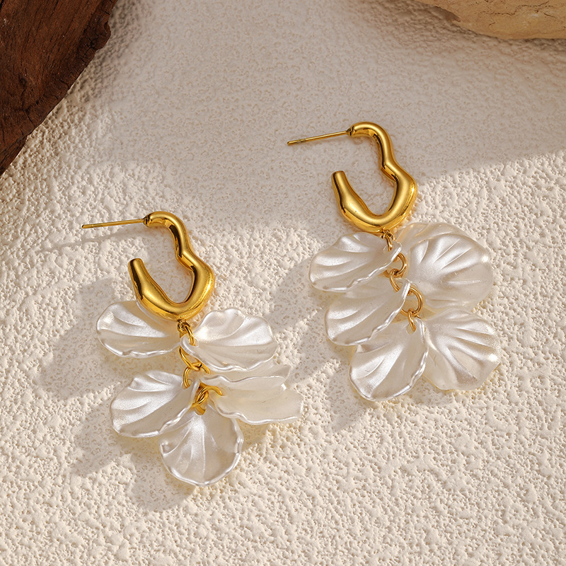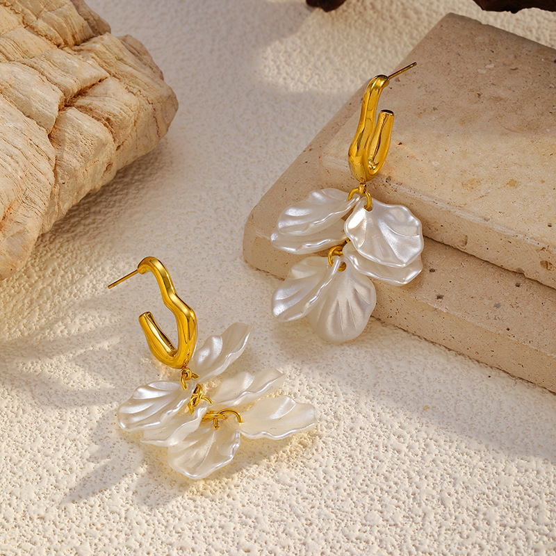 Boucle d'oreille goutte inox, Acier inoxydable 304, avec plastique ABS, Placage, bijoux de mode & pour femme, doré, Vendu par paire