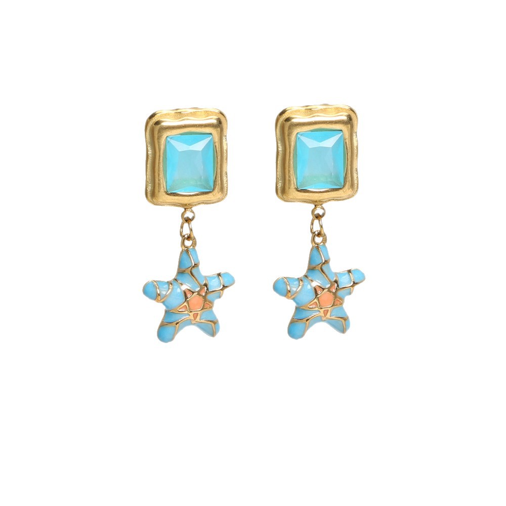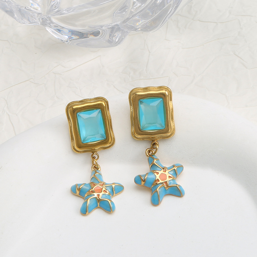 Boucle d'oreille goutte inox, acier inoxydable, avec strass, couleur originale  0.8mm, Vendu par paire