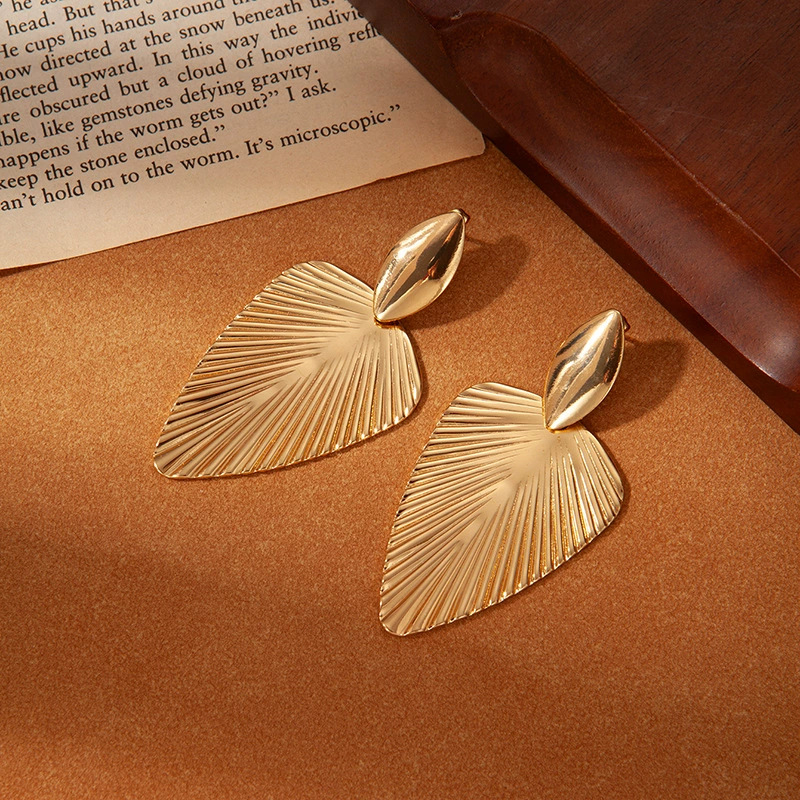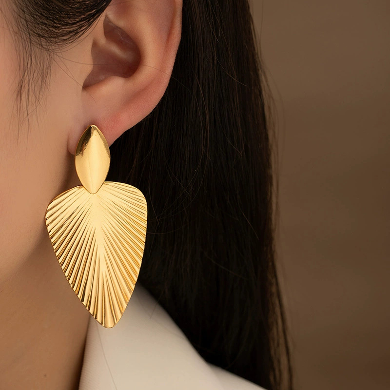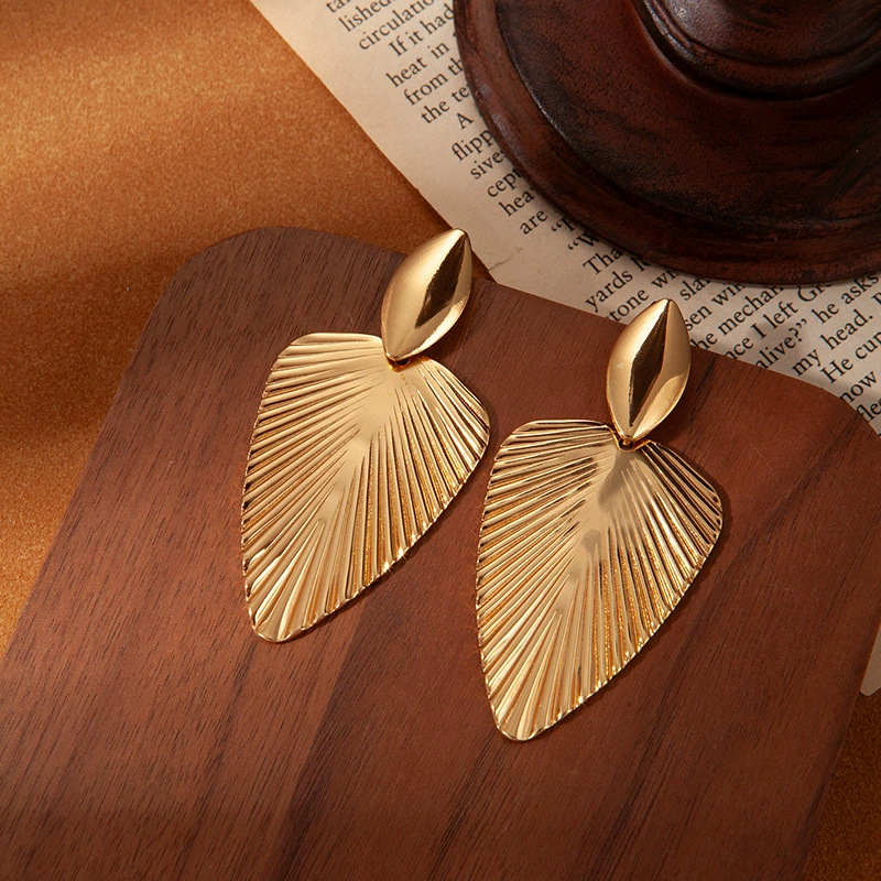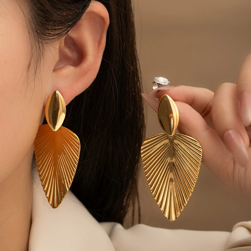 Boucle d'oreille goutte inox, Acier inoxydable 304, feuille, Placage, bijoux de mode & pour femme, doré, Vendu par paire