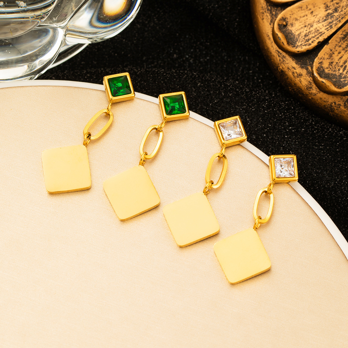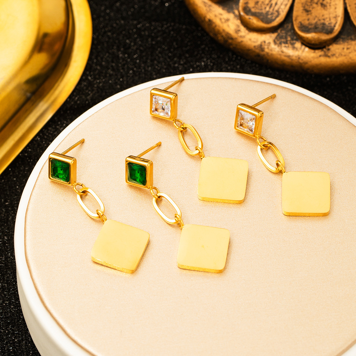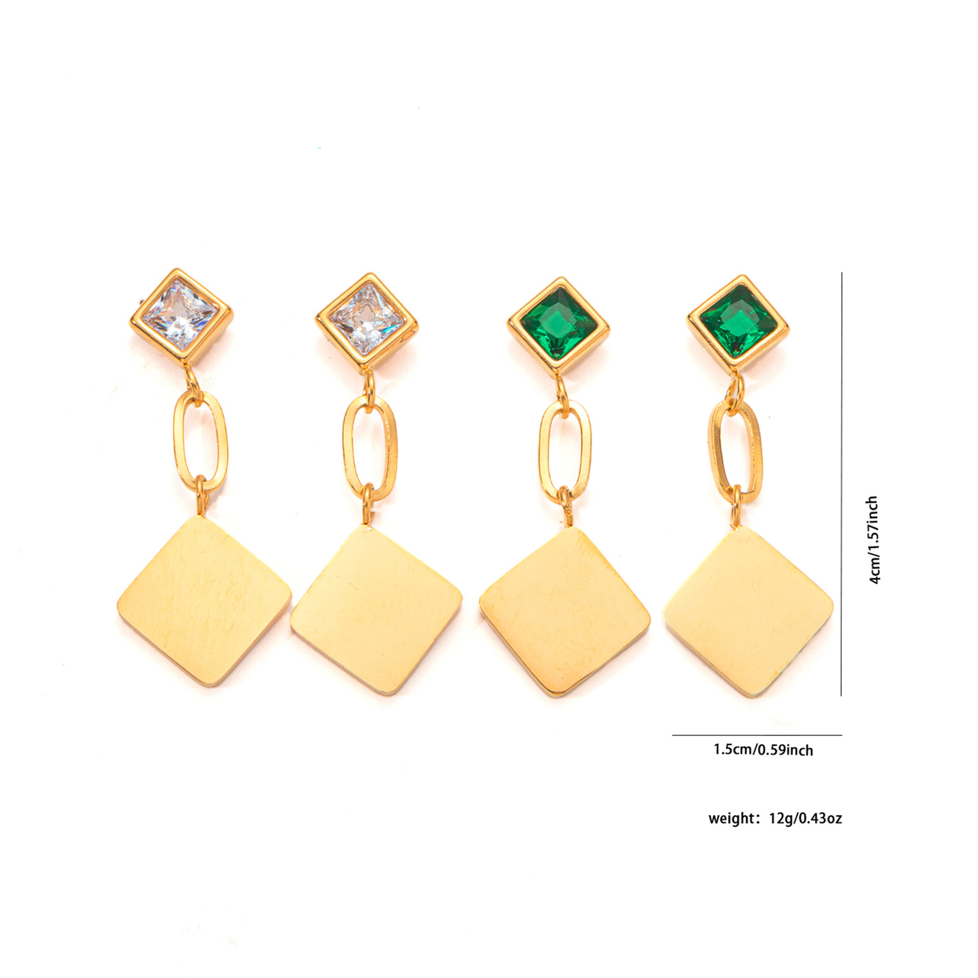Boucle d'oreille goutte inox, acier inoxydable, acier inoxydable boucle d'oreille crochet, rectangle, pour femme & avec strass, plus de couleurs à choisir Environ 2.6 pouce, Vendu par paire