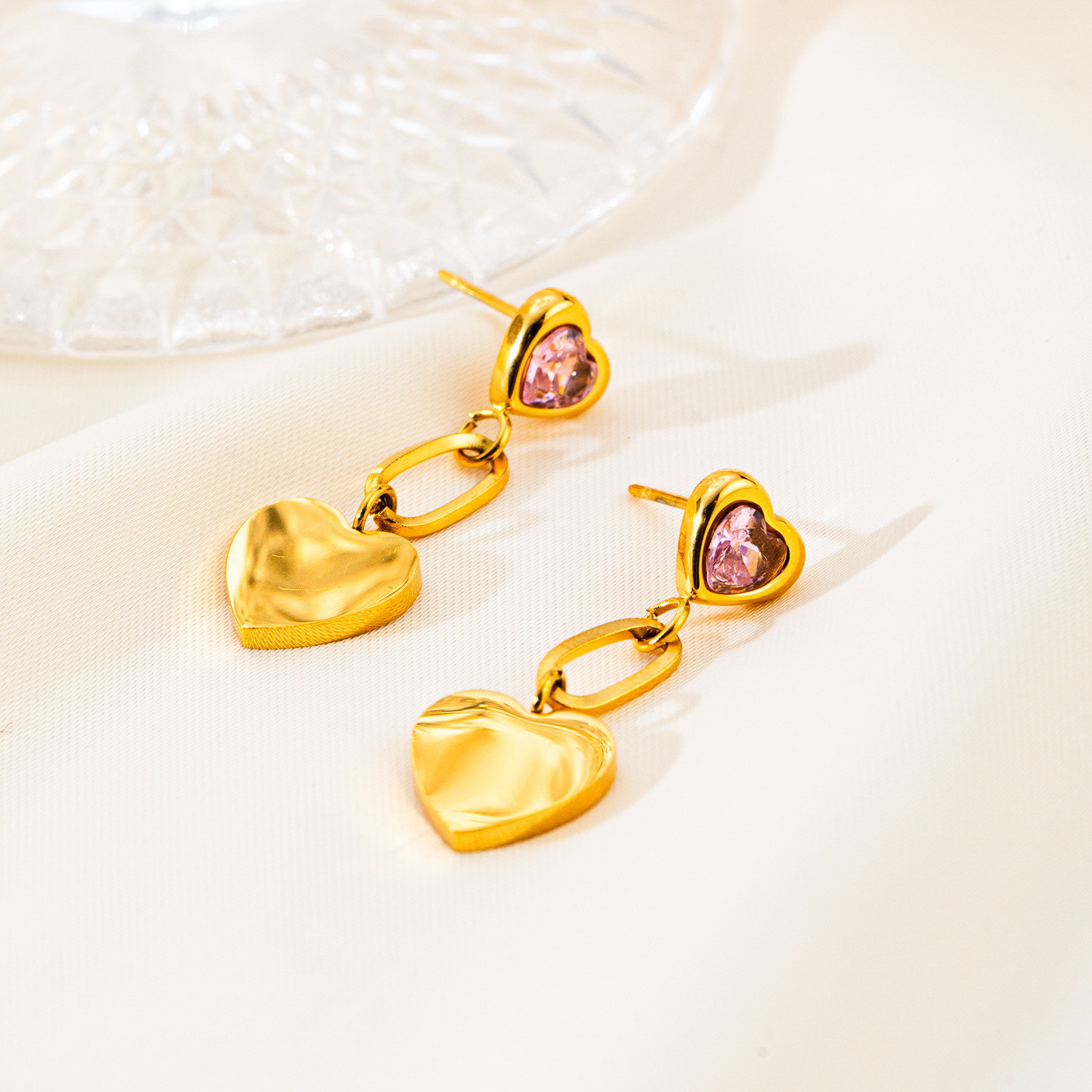 Boucle d'oreille goutte inox, acier inoxydable, avec strass, couleur originale  0.8mm, Vendu par paire