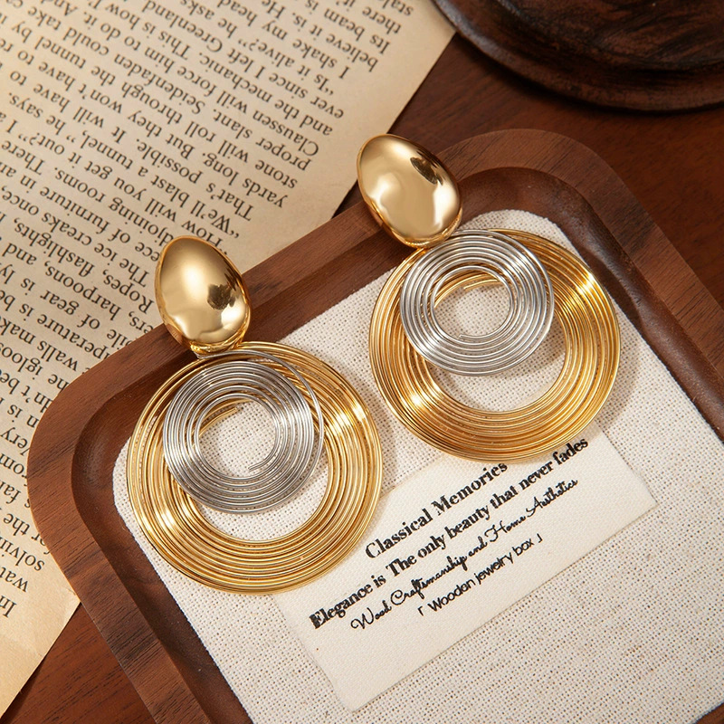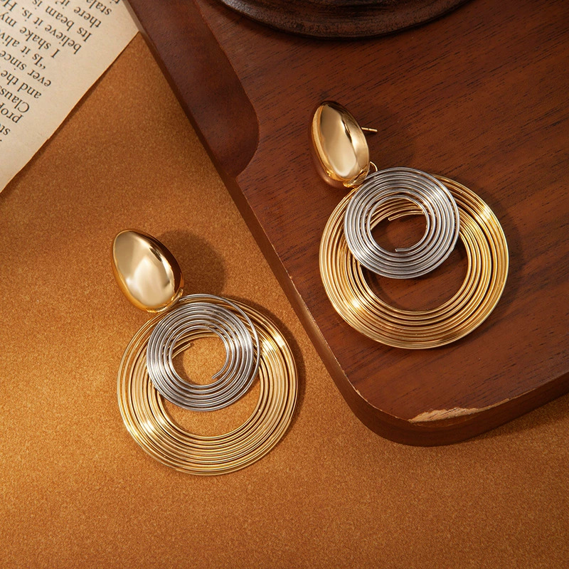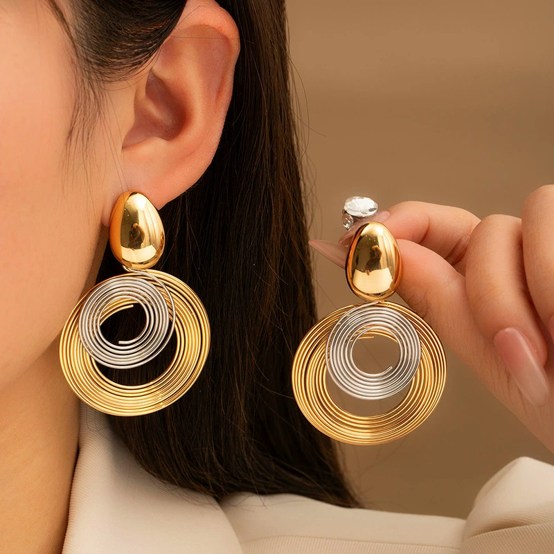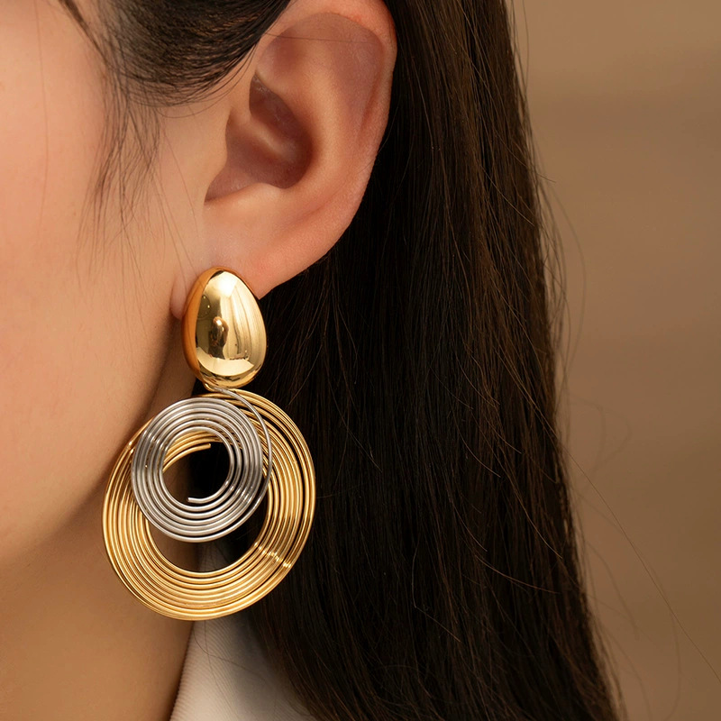 Boucle d'oreille goutte inox, Acier inoxydable 304, Placage, pour femme & deux tons & creux, Vendu par paire