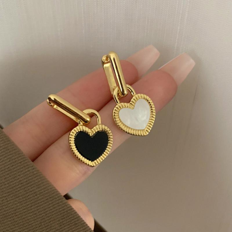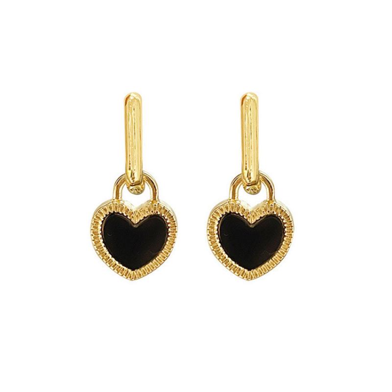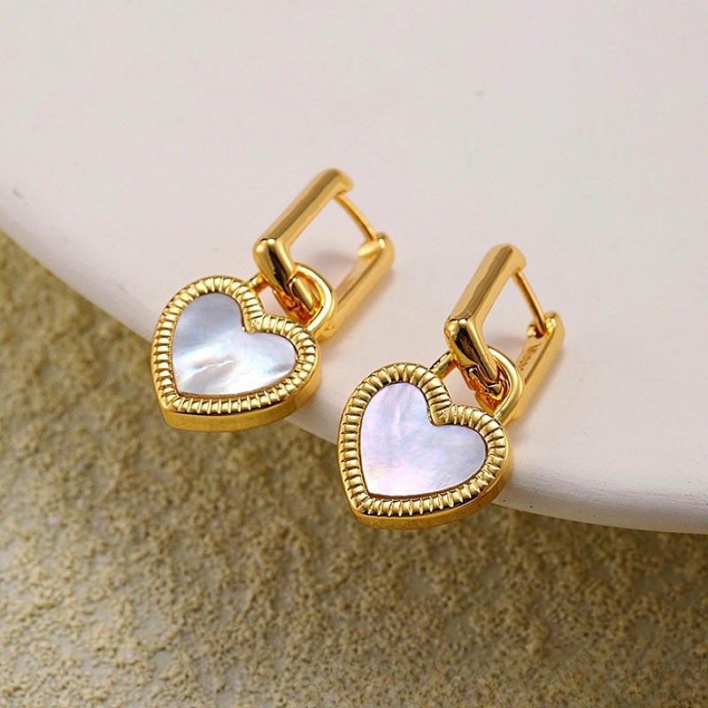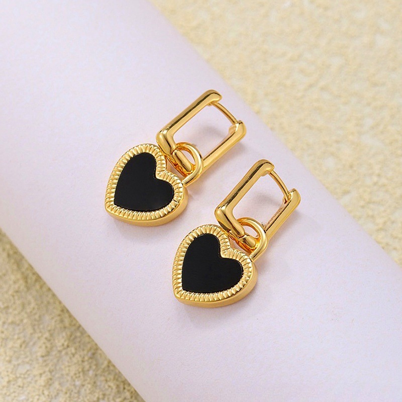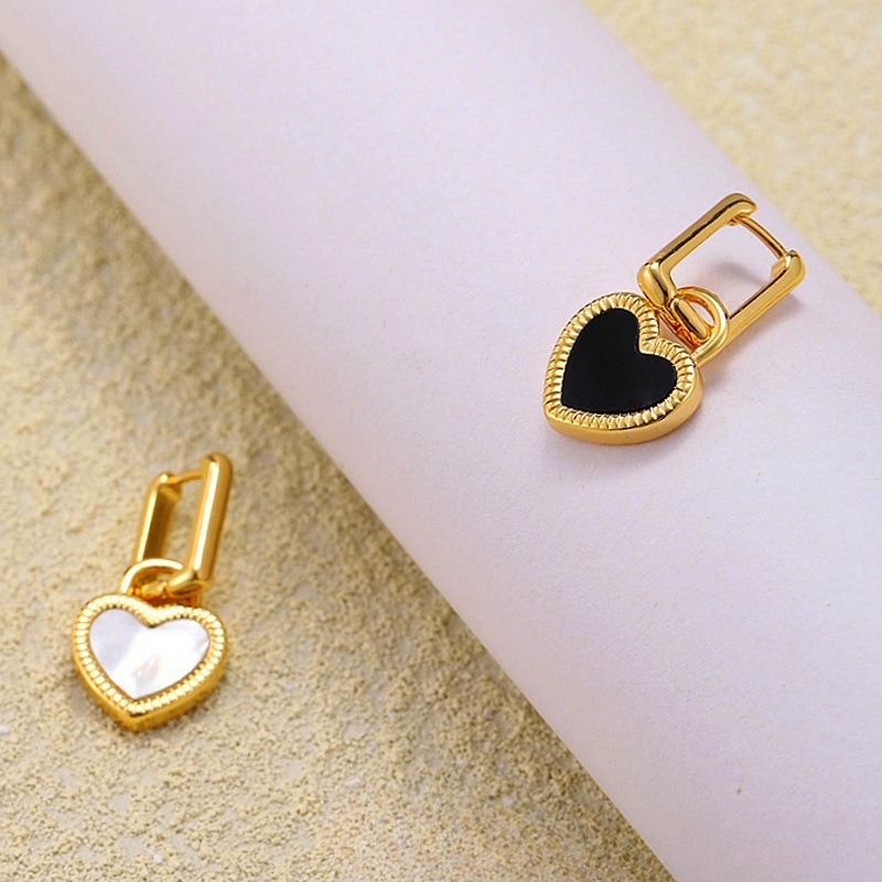 Boucle d'oreille goutte inox, Acier inoxydable 304, avec Acrylique, coeur, Placage, bijoux de mode & pour femme & double face, doré, 34x14mm, Vendu par paire