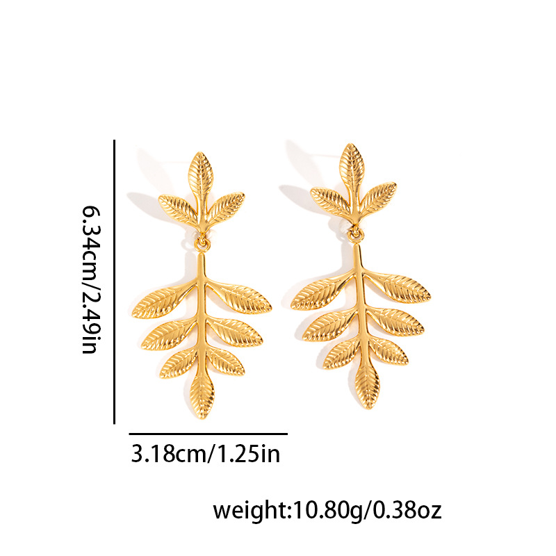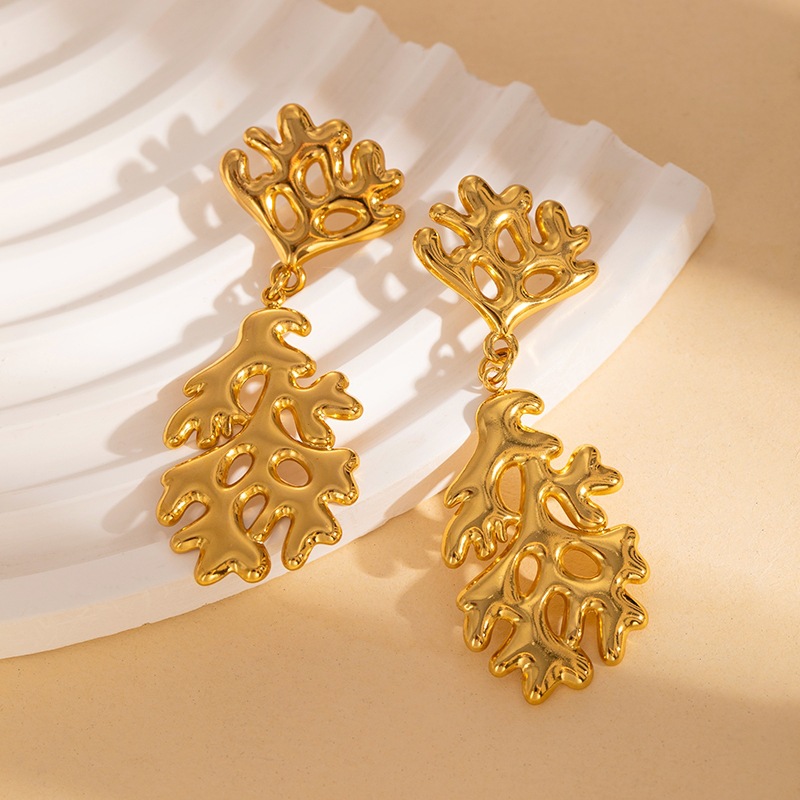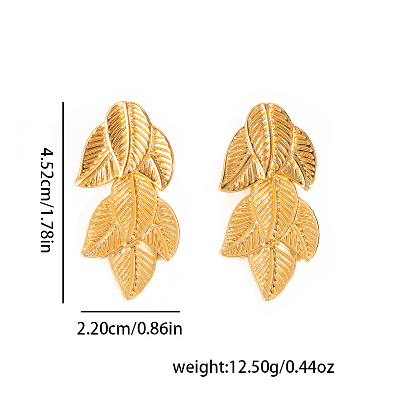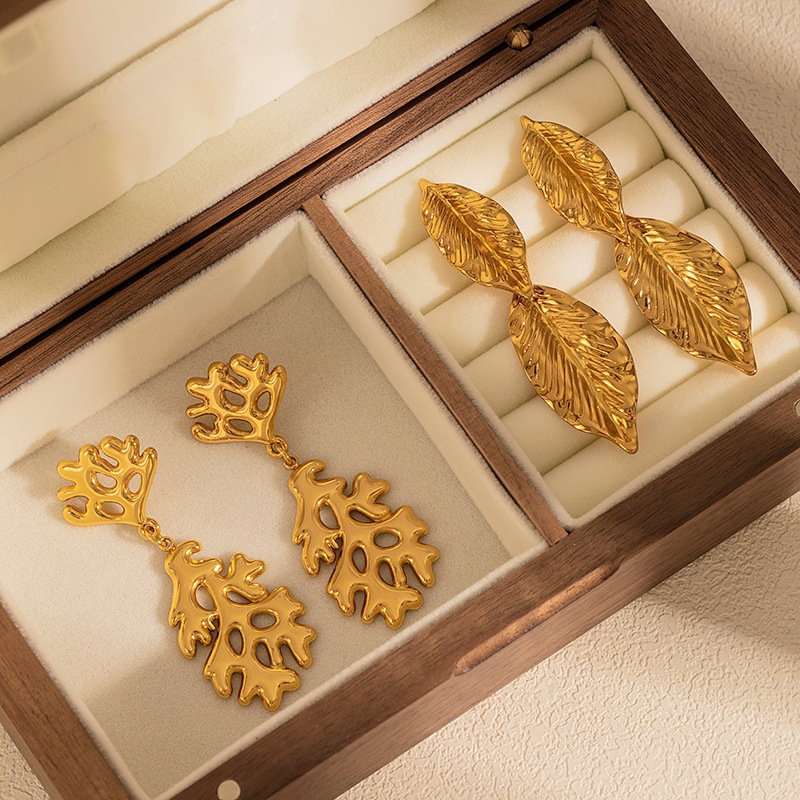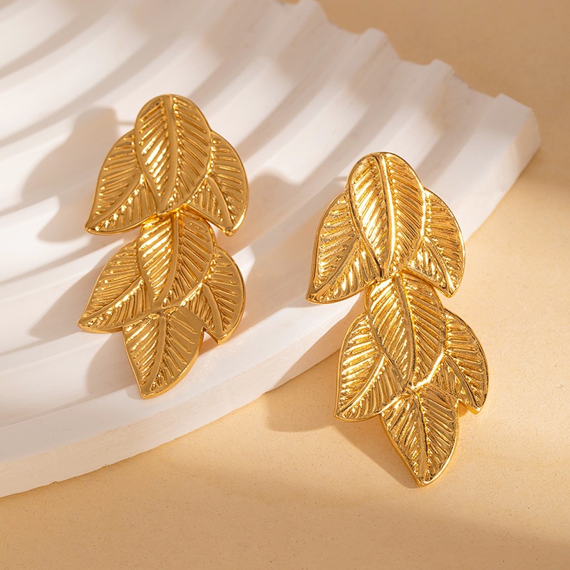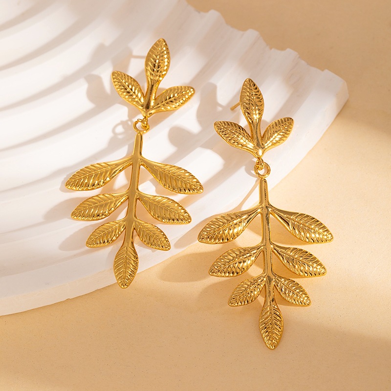 Boucle d'oreille goutte inox, Acier inoxydable 304, feuille, Plaqué or 18K, bijoux de mode & styles différents pour le choix & pour femme, Vendu par paire
