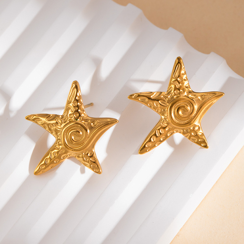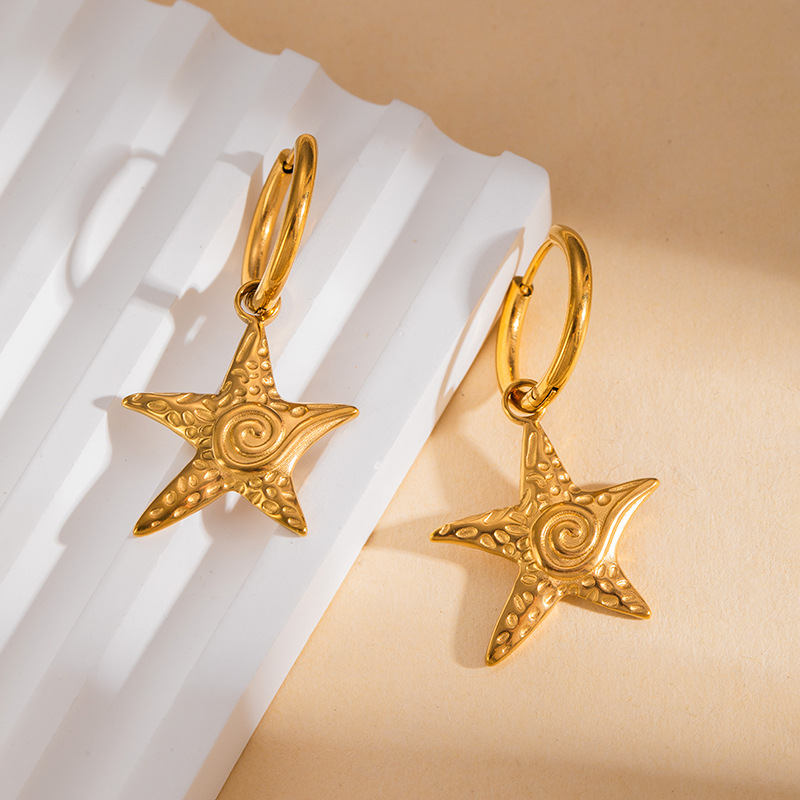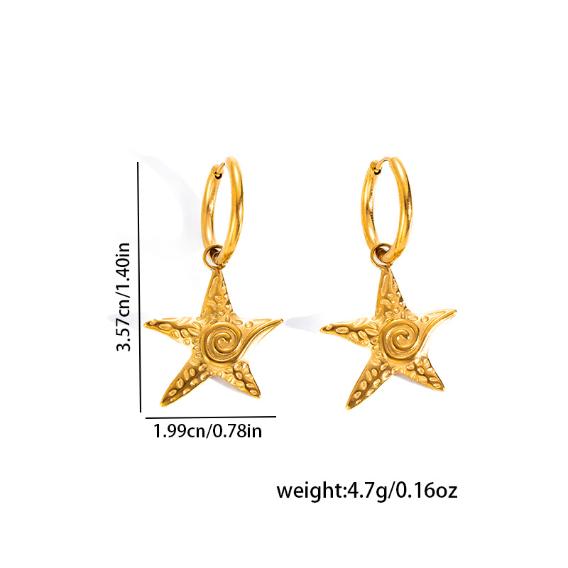 Boucle d'oreille goutte inox, Acier inoxydable 304, étoile, Placage, bijoux de mode & styles différents pour le choix & pour femme, doré, Vendu par paire