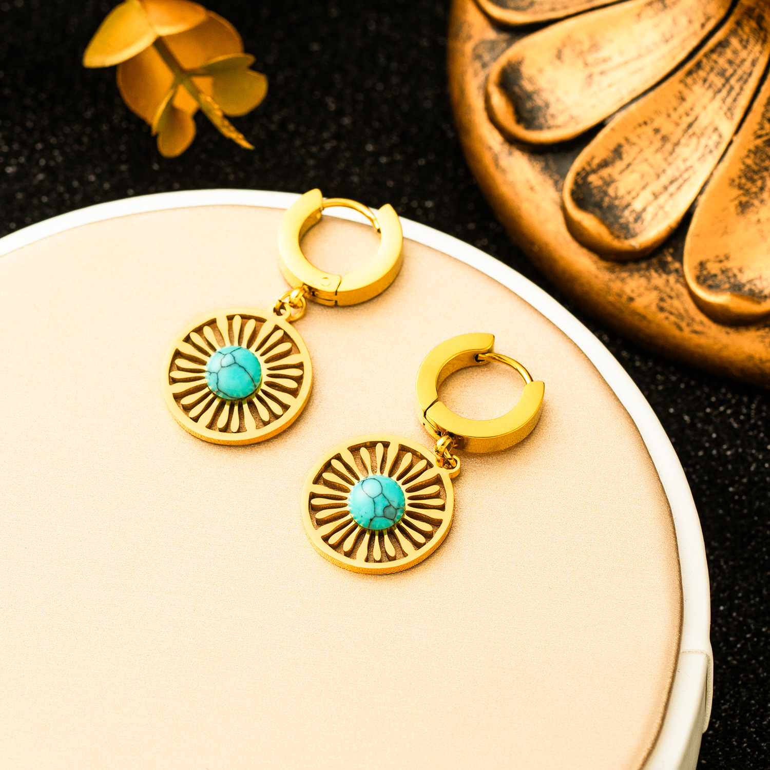 Boucle d'oreille goutte inox, Acier inoxydable 304, avec Pierre naturelle, Rond, Placage, bijoux de mode & pour femme & creux, doré, 30x16mm, Vendu par paire