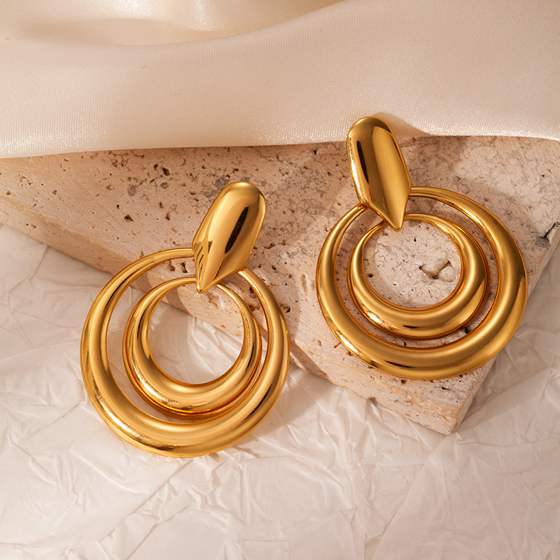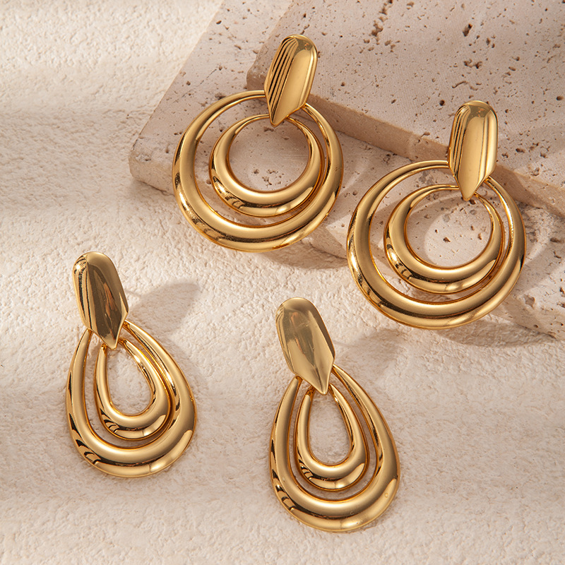 Boucle d'oreille goutte inox, Acier inoxydable 304, Placage, styles différents pour le choix & pour femme & creux, doré, Vendu par paire