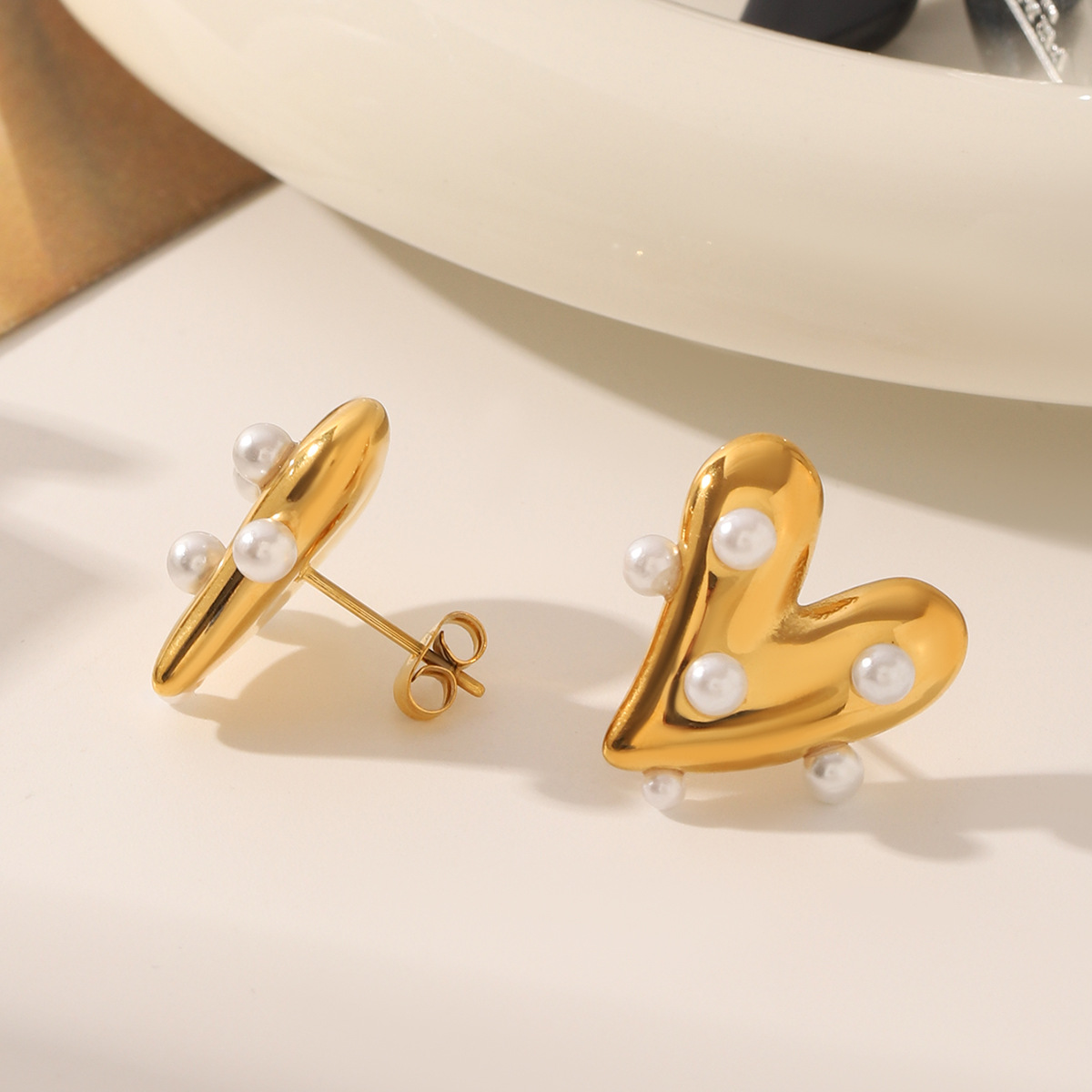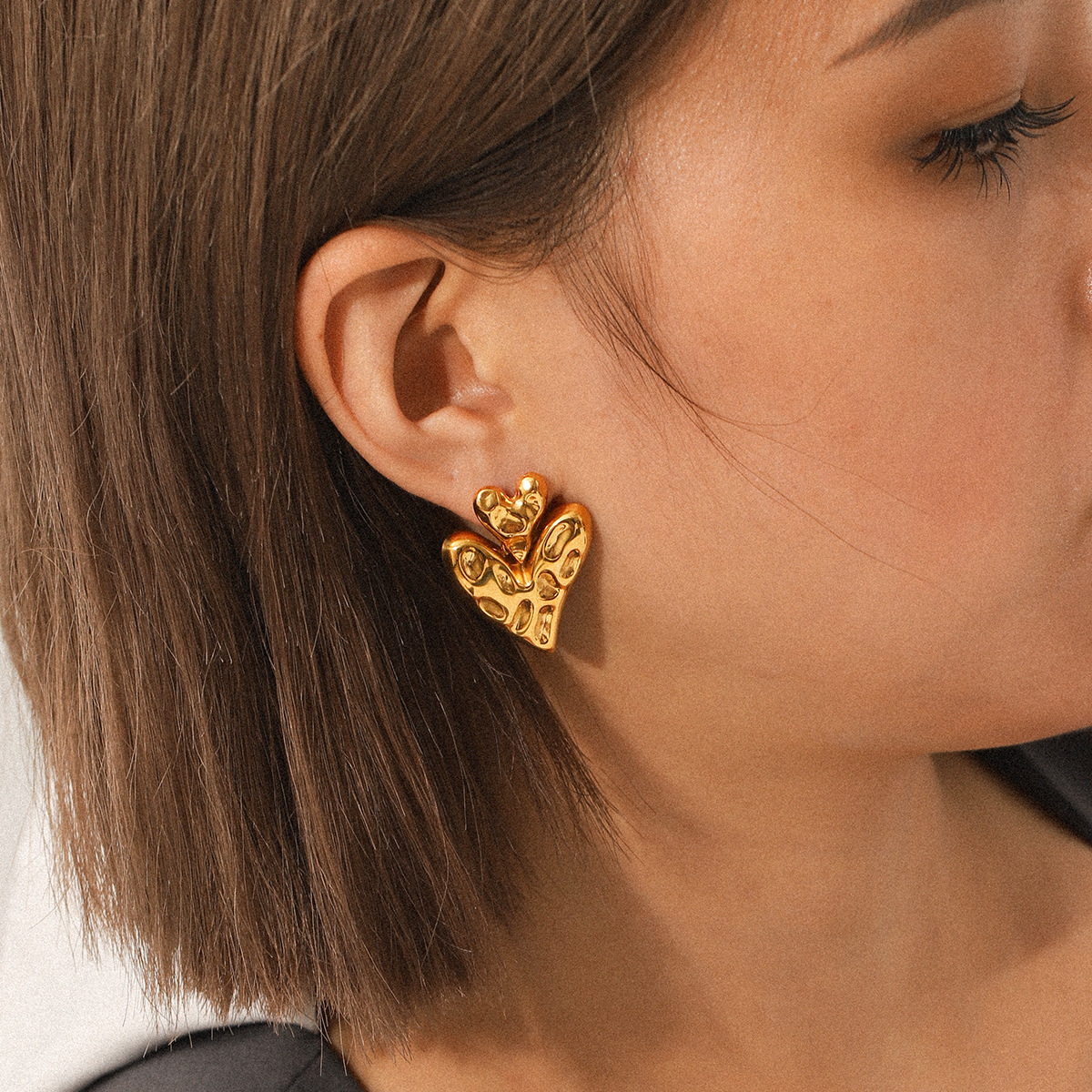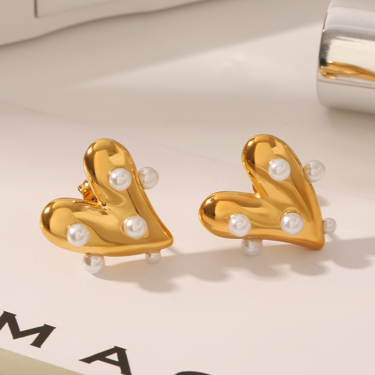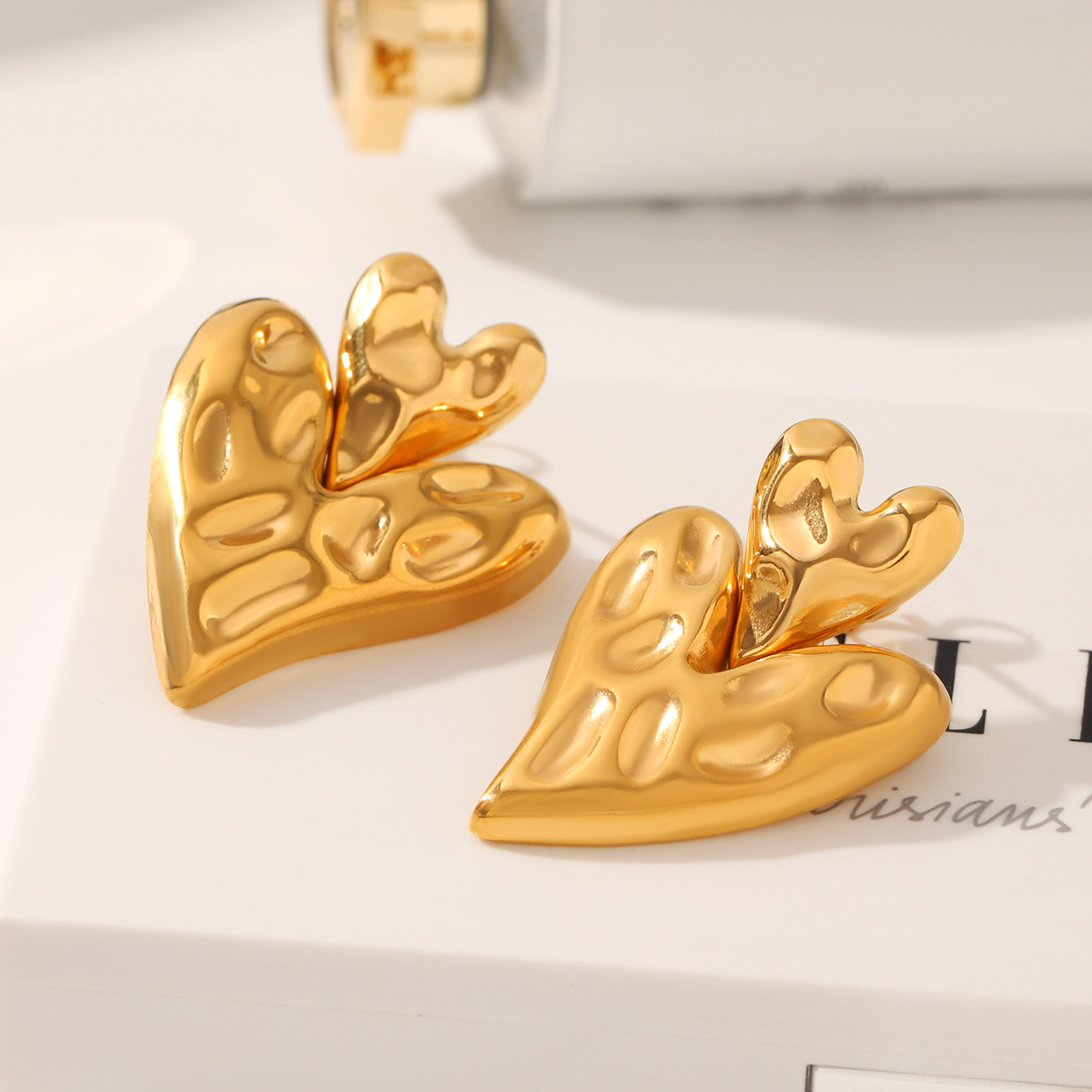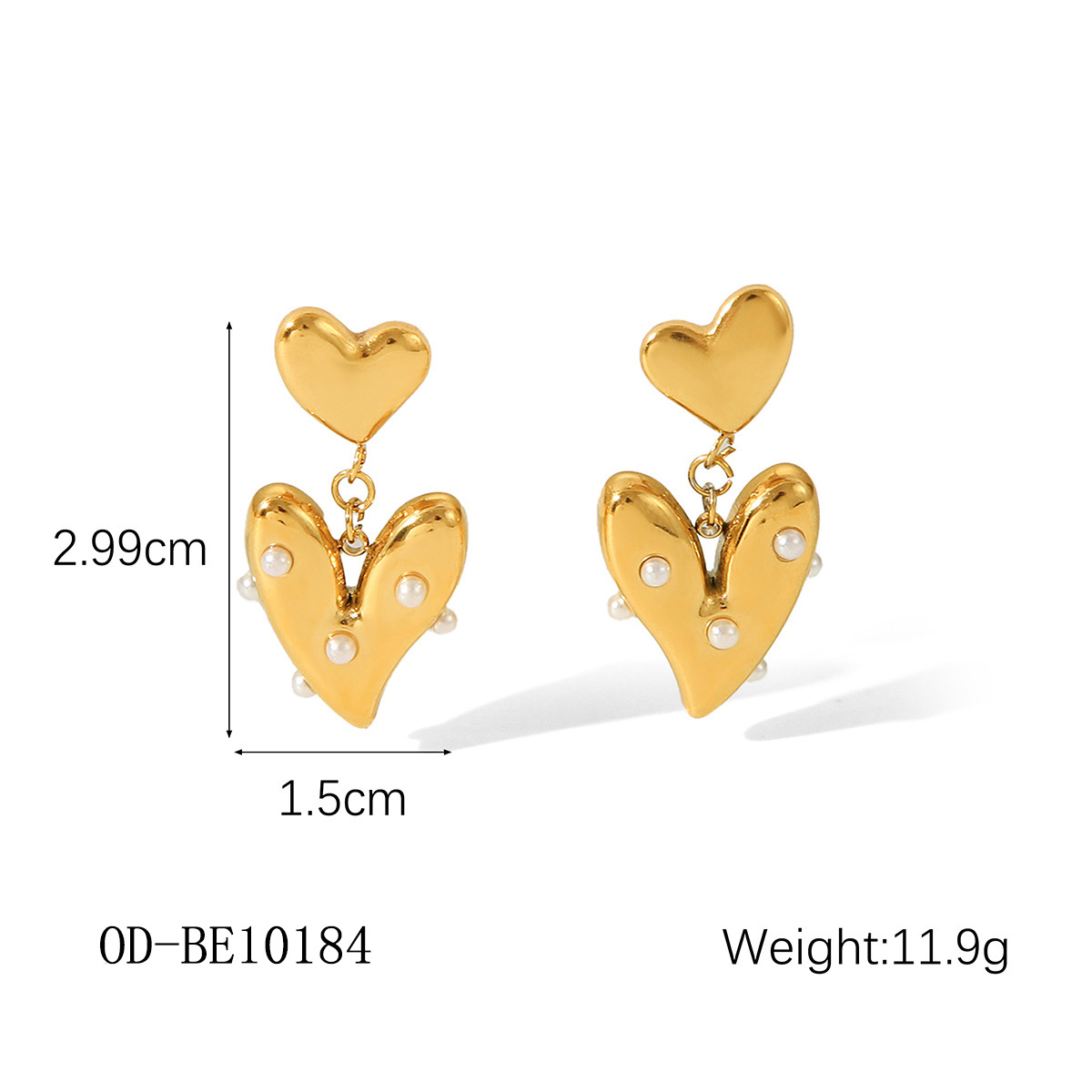 Boucle d'oreille goutte inox, Acier inoxydable 304, coeur, Plaqué or 18K, bijoux de mode & styles différents pour le choix & pour femme, Vendu par paire