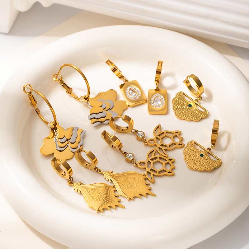 Boucle d'oreille goutte inox, acier inoxydable, larme, Placage, plus de couleurs à choisir, 65mm Vendu par paire