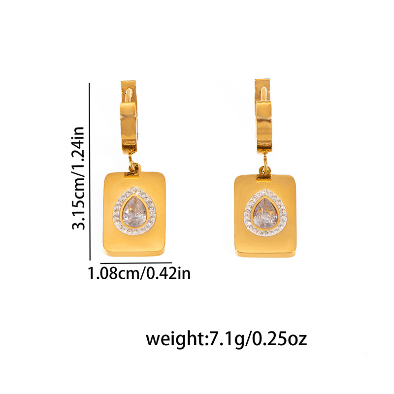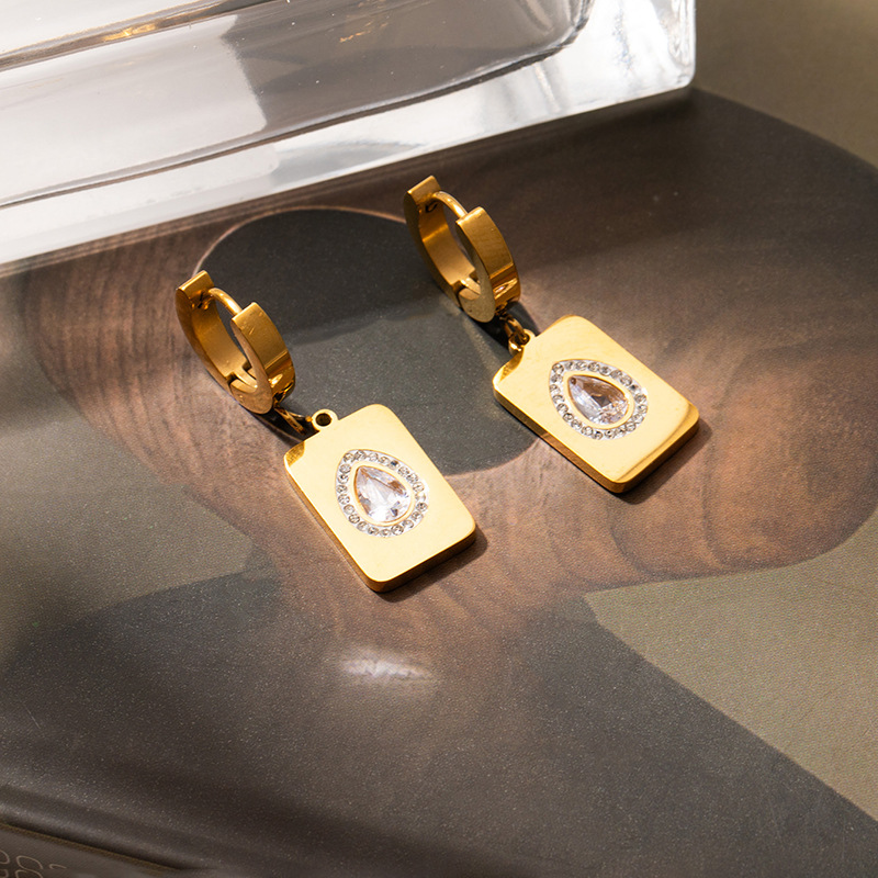 Boucle d'oreille goutte inox, acier inoxydable, acier inoxydable boucle d'oreille crochet, rectangle, pour femme & avec strass, plus de couleurs à choisir Environ 2.6 pouce, Vendu par paire