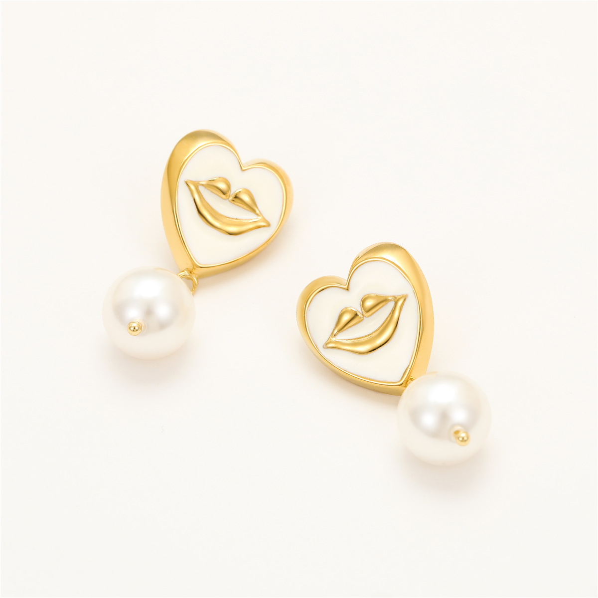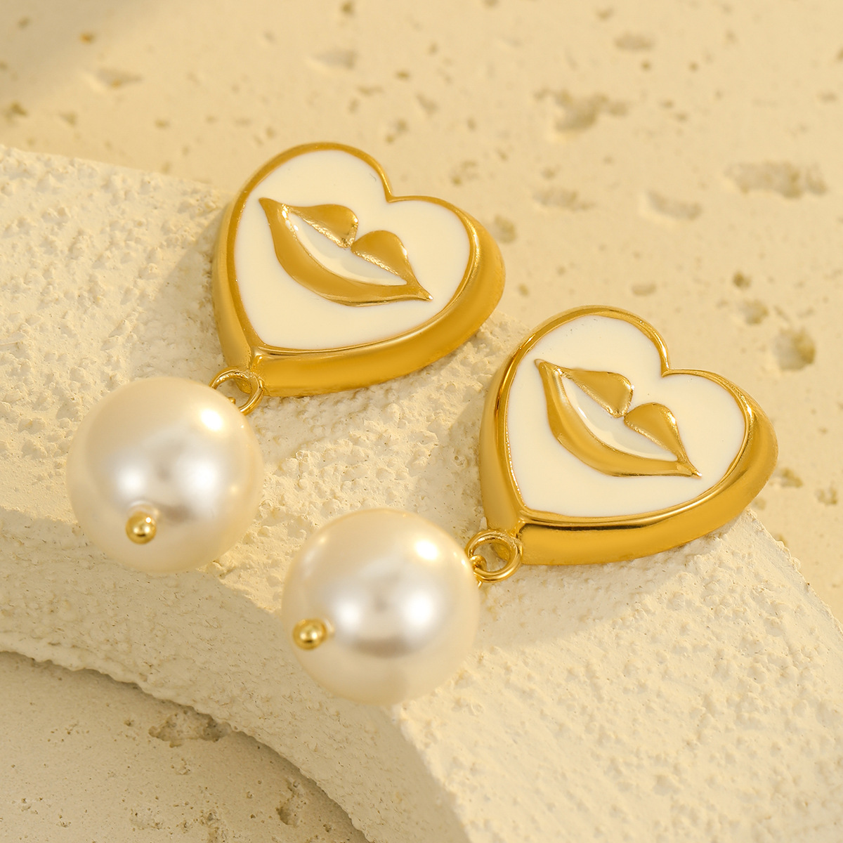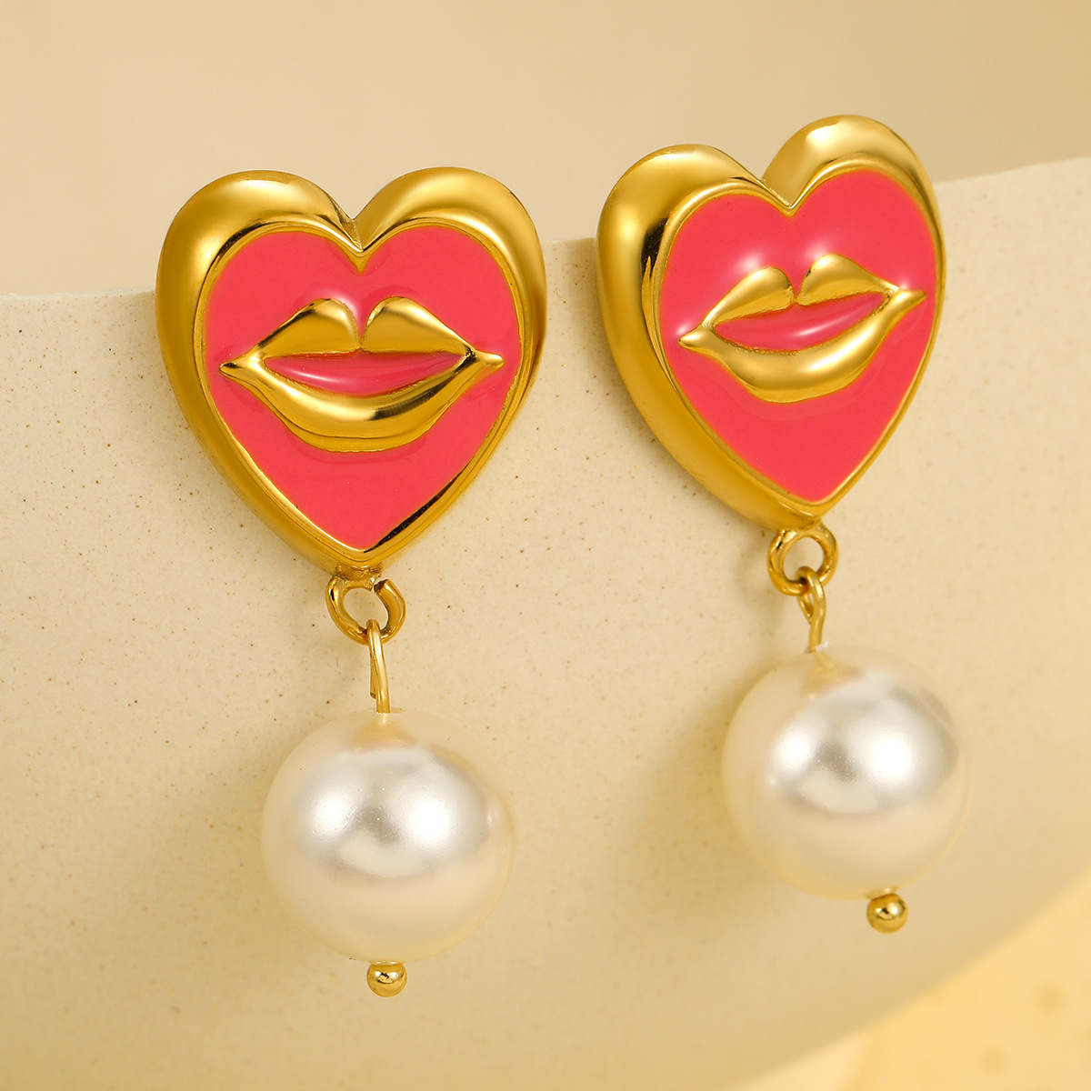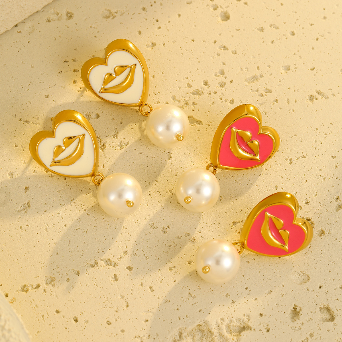 Boucle d'oreille goutte inox, Acier inoxydable 304, avec perle de plastique, Plaqué or 18K, bijoux de mode & pour femme & émail, plus de couleurs à choisir, Vendu par paire