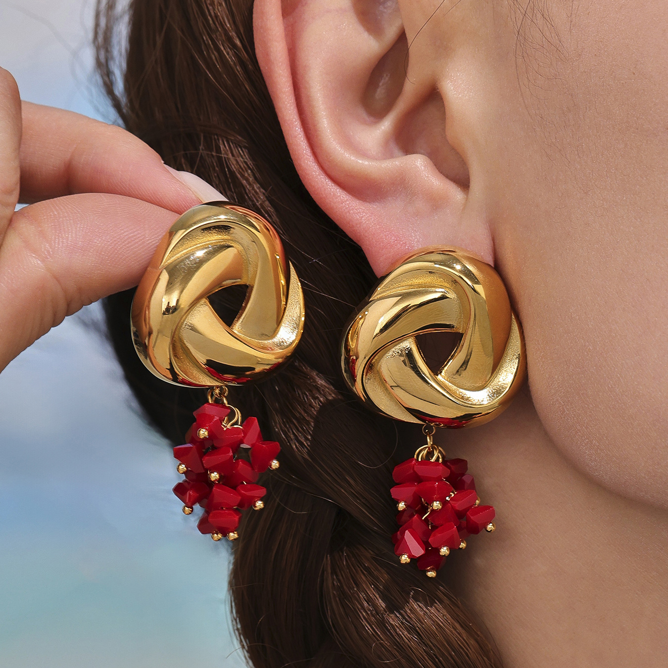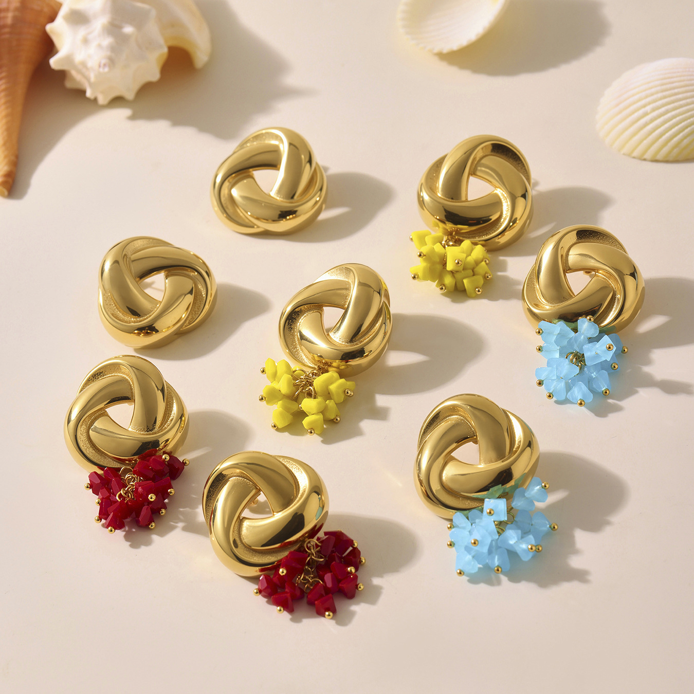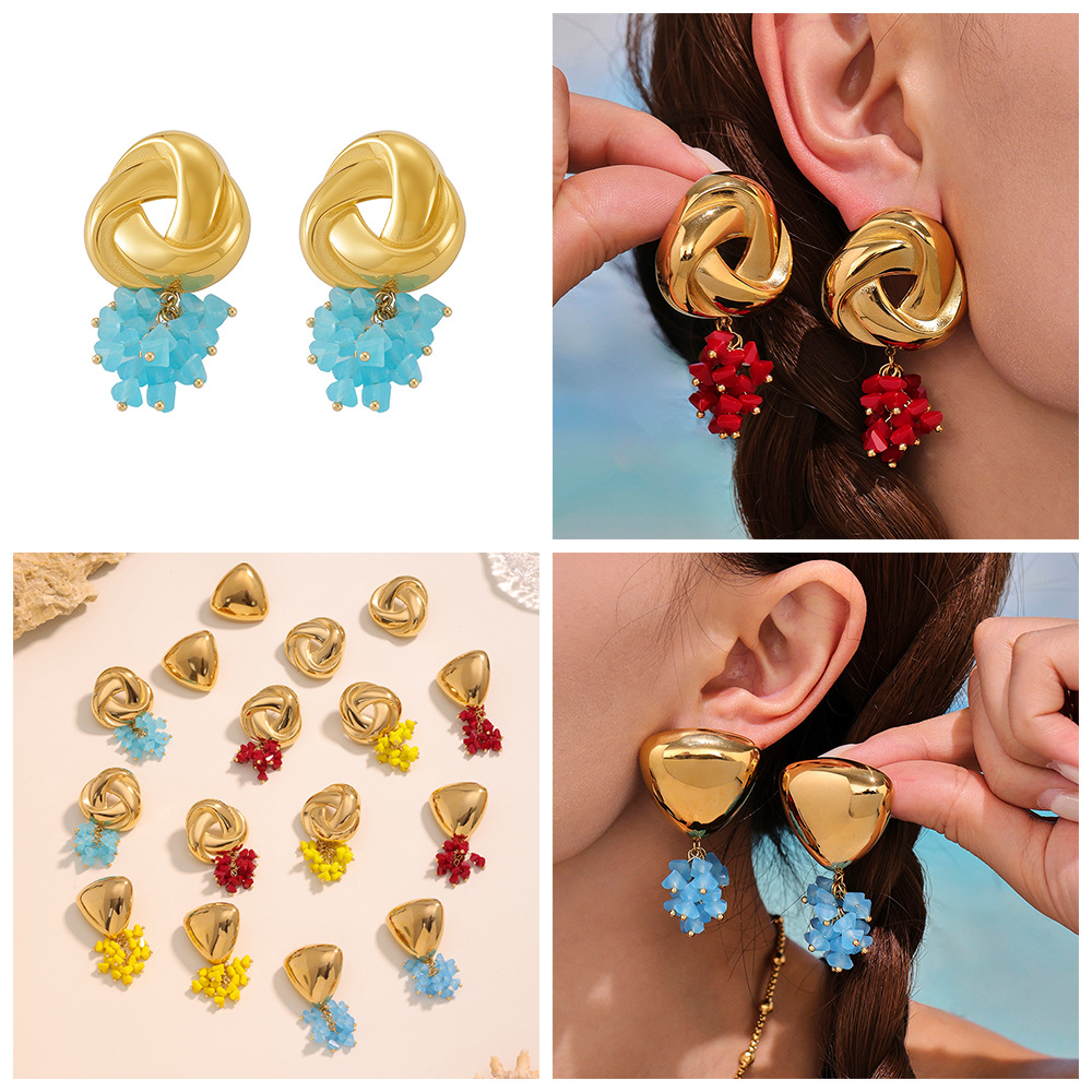 Boucle d'oreille goutte inox, Acier inoxydable 304, avec verre, Plaqué or 18K, bijoux de mode & styles différents pour le choix & pour femme, plus de couleurs à choisir, Vendu par paire