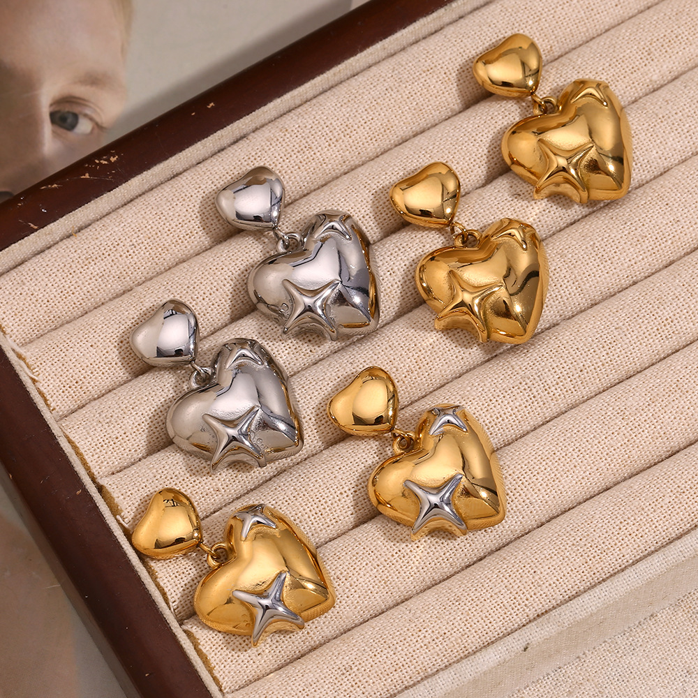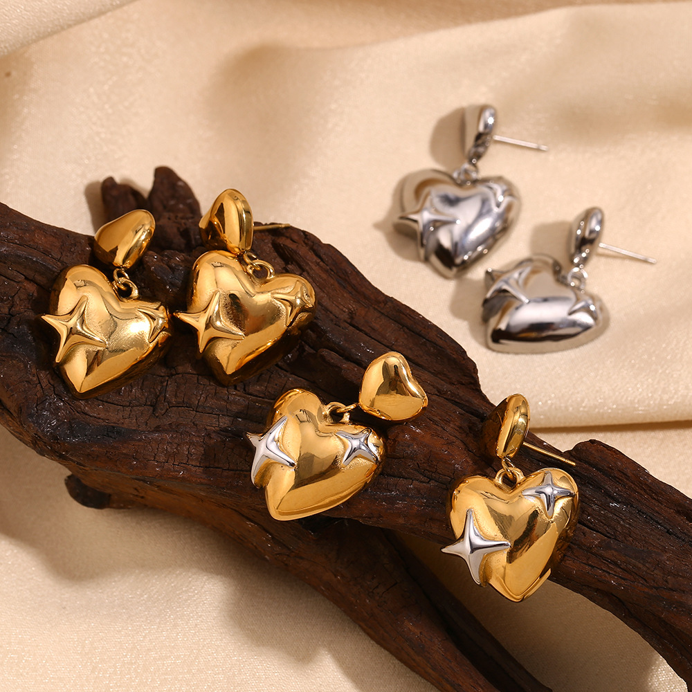 Boucle d'oreille goutte inox, Acier inoxydable 304, coeur, Placage, bijoux de mode & pour femme, plus de couleurs à choisir, Vendu par paire