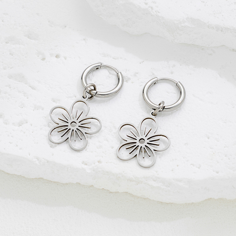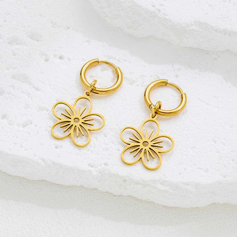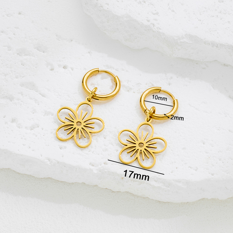 Boucle d'oreille goutte inox, Acier inoxydable 304, fleur, Placage, bijoux de mode, plus de couleurs à choisir, Vendu par paire