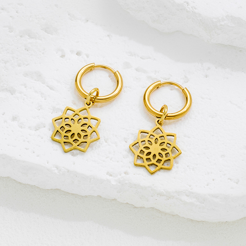 Boucle d'oreille goutte inox, Acier inoxydable 304, Datura Stramonium, Placage, bijoux de mode, plus de couleurs à choisir, Vendu par paire