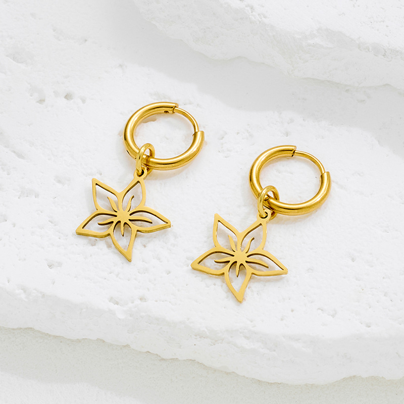 Boucle d'oreille goutte inox, Acier inoxydable 304, fleur, Placage, bijoux de mode, plus de couleurs à choisir, Vendu par paire
