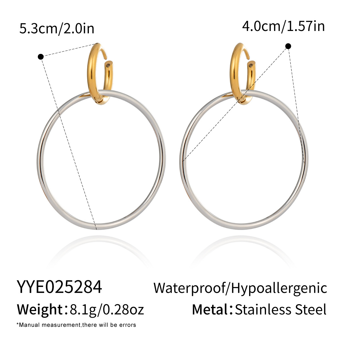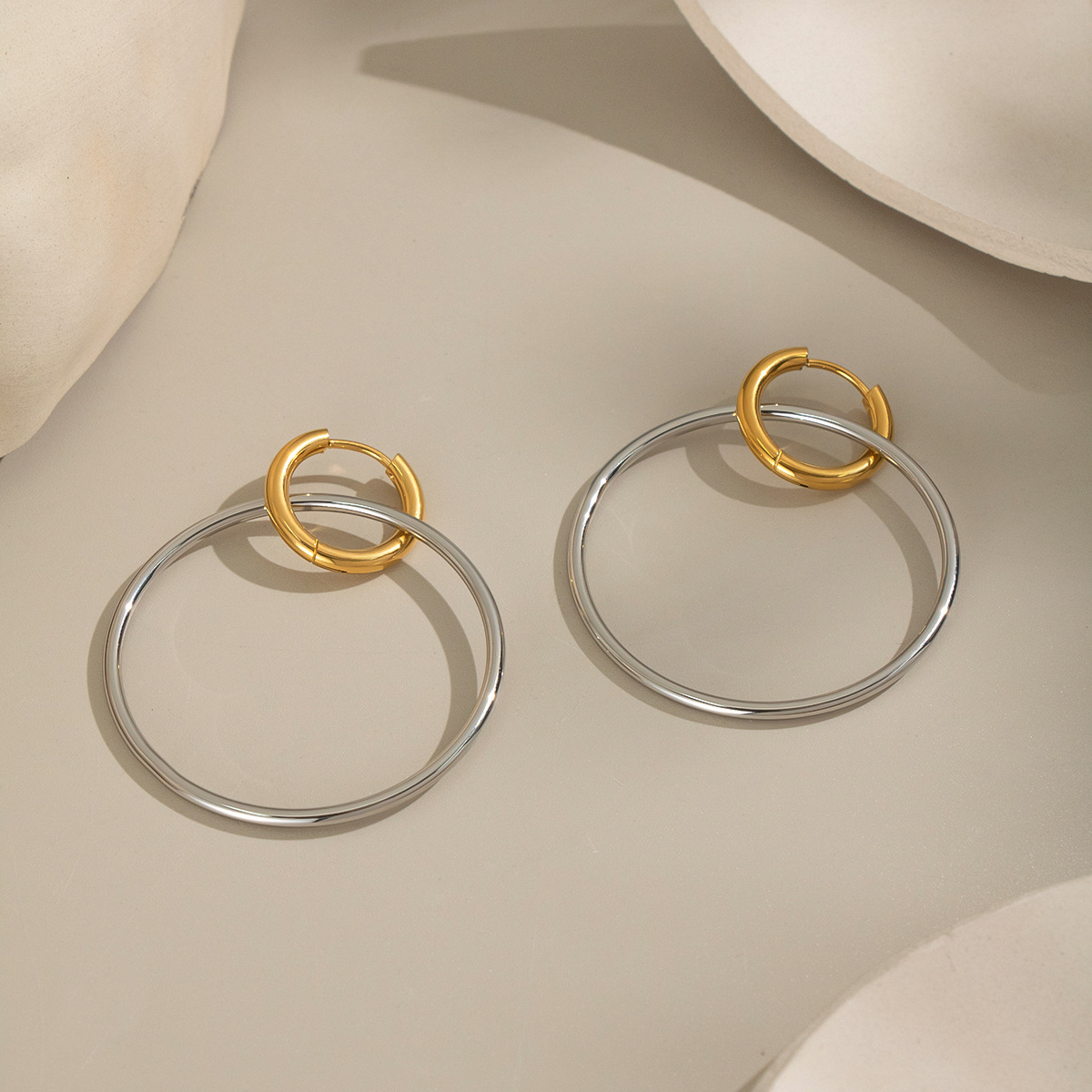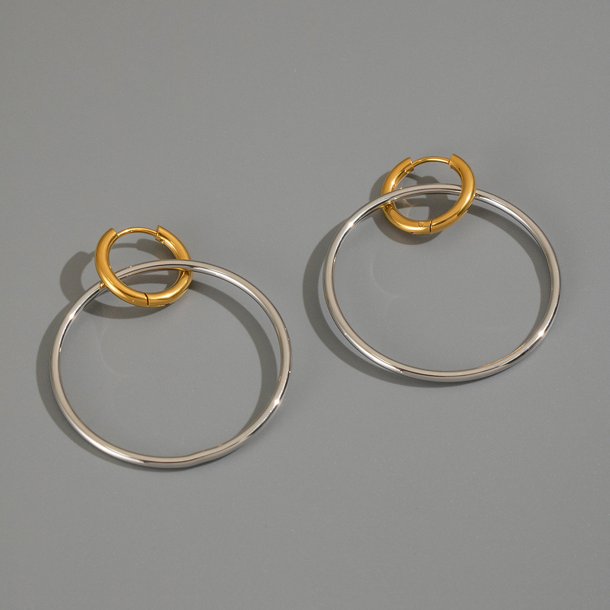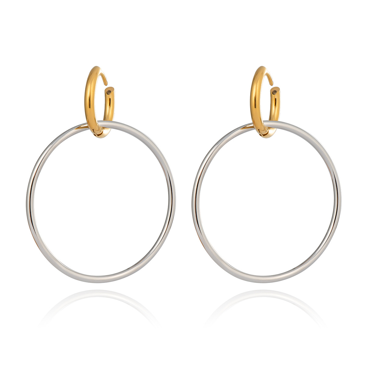 Boucle d'oreille goutte inox, Acier inoxydable 304, Placage, pour femme & deux tons & creux, Vendu par paire