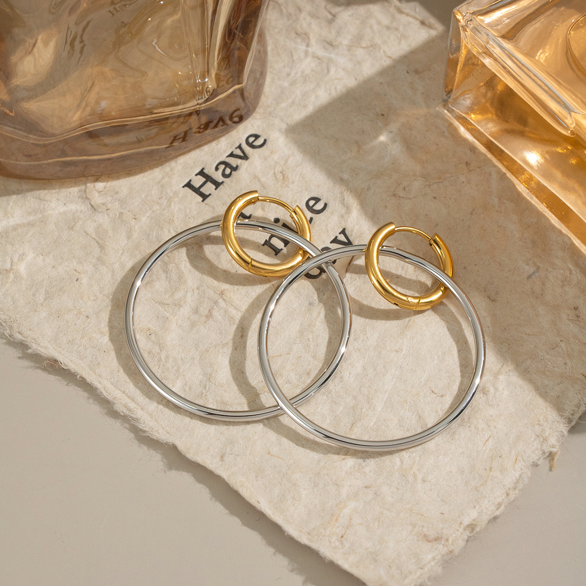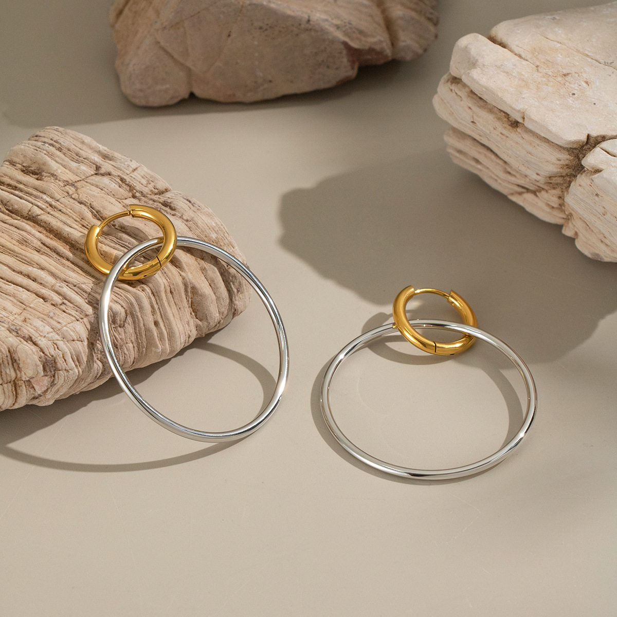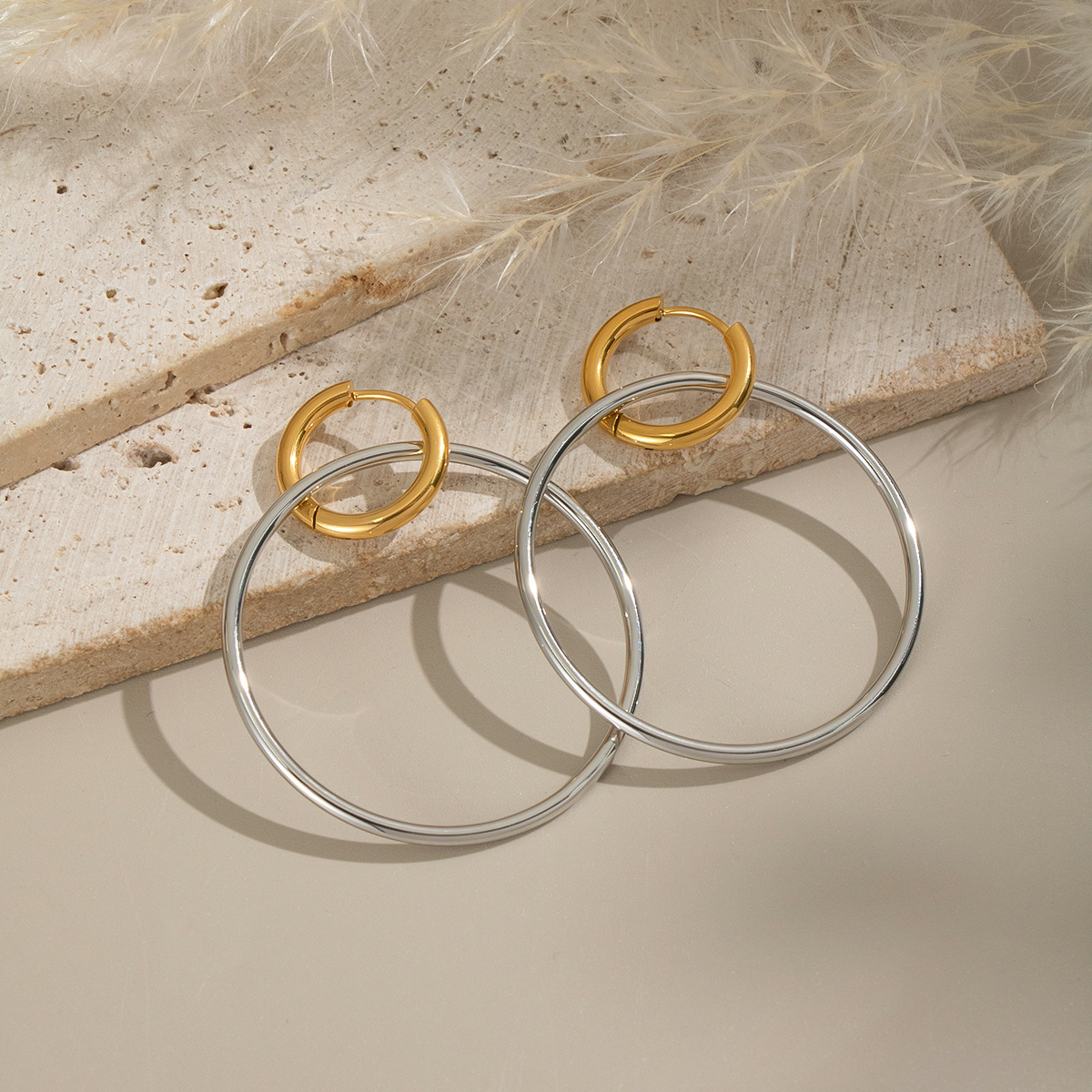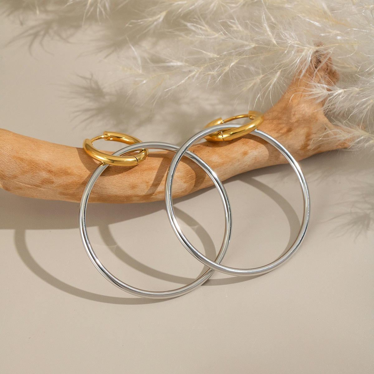 Boucle d'oreille goutte inox, Acier inoxydable 304, Placage, pour femme & deux tons & creux, Vendu par paire