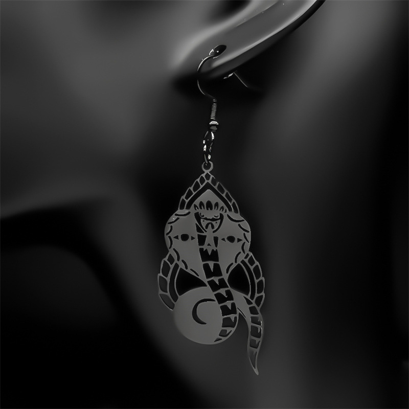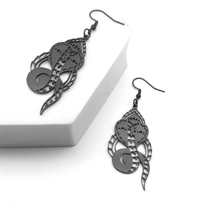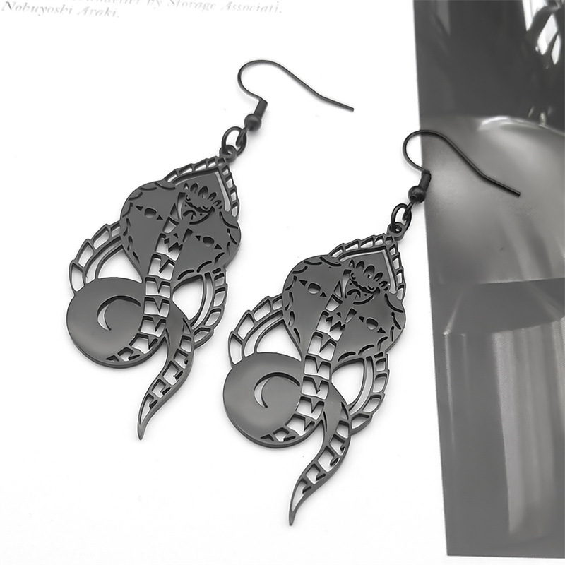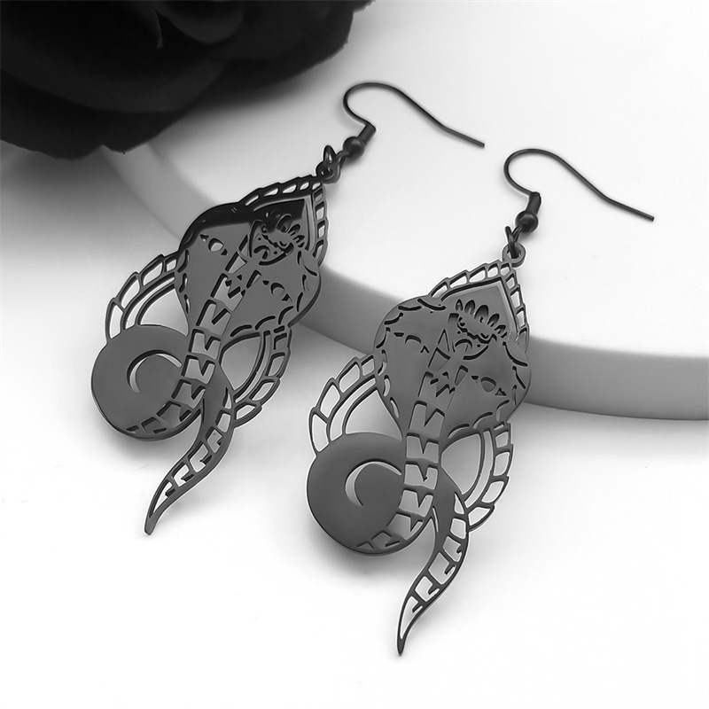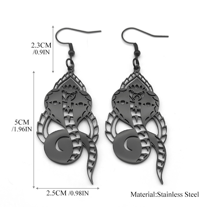 Boucle d'oreille goutte inox, Acier inoxydable 304, serpent, Placage, bijoux de mode & pour femme & creux, noire, Vendu par paire