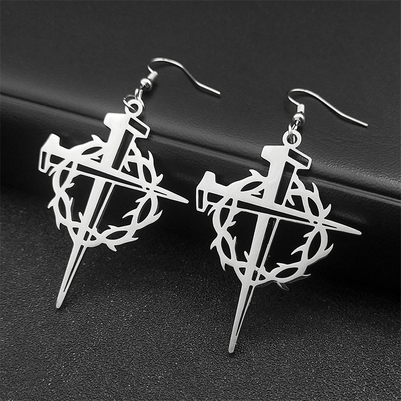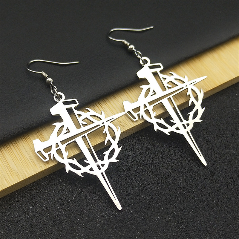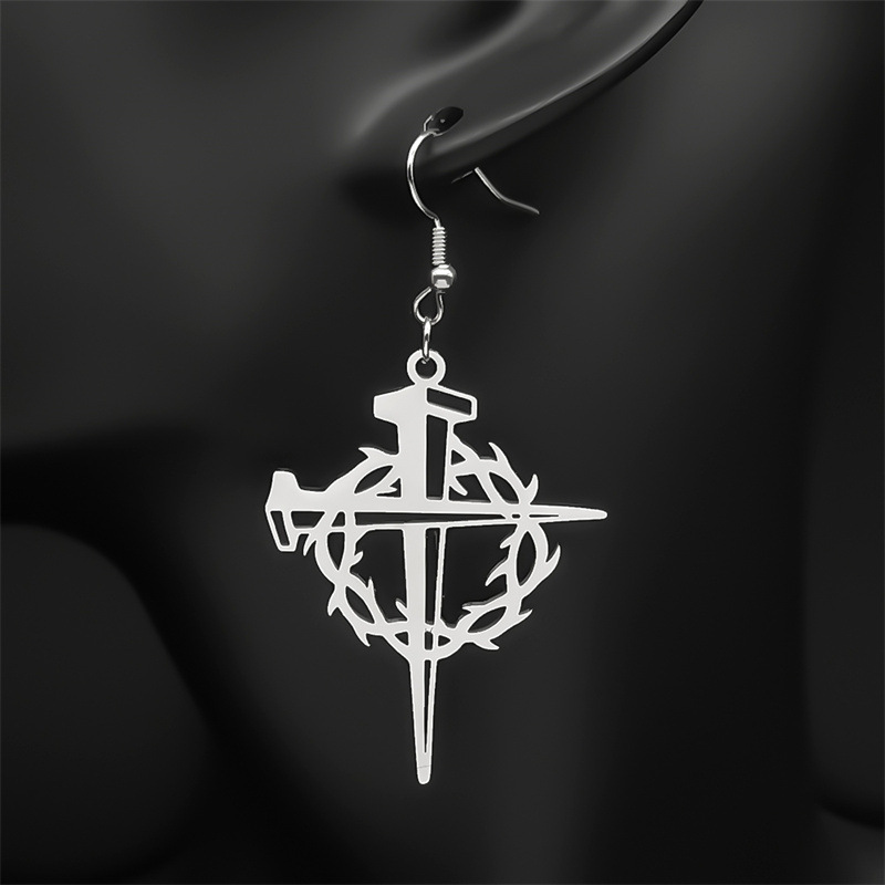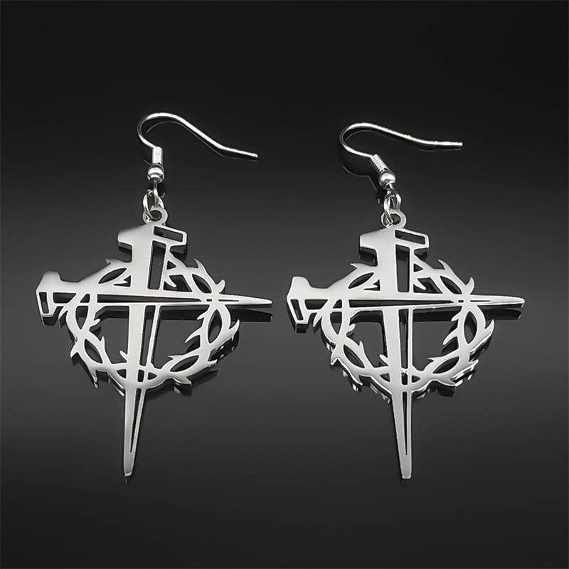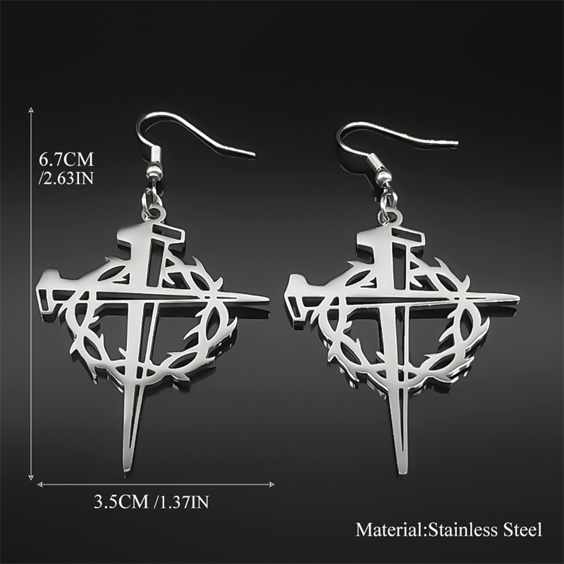 Acier titane Boucle d'oreille goutte, acier inoxydable puce boucle d'oreille, croix, Placage, unisexe, plus de couleurs à choisir, 6mm, Vendu par PC