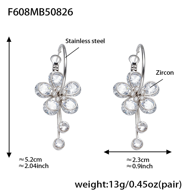 Boucle d'oreille goutte inox, Acier inoxydable 304, fleur, Placage, bijoux de mode & pavé de micro zircon & pour femme, plus de couleurs à choisir, Vendu par paire