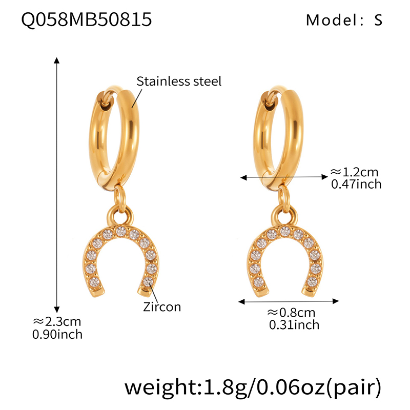 Q060- Golden Horseshoe-shaped zirconia earrings