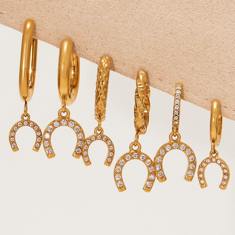 Q058- Golden Horseshoe Buckle Zircon Earrings -L