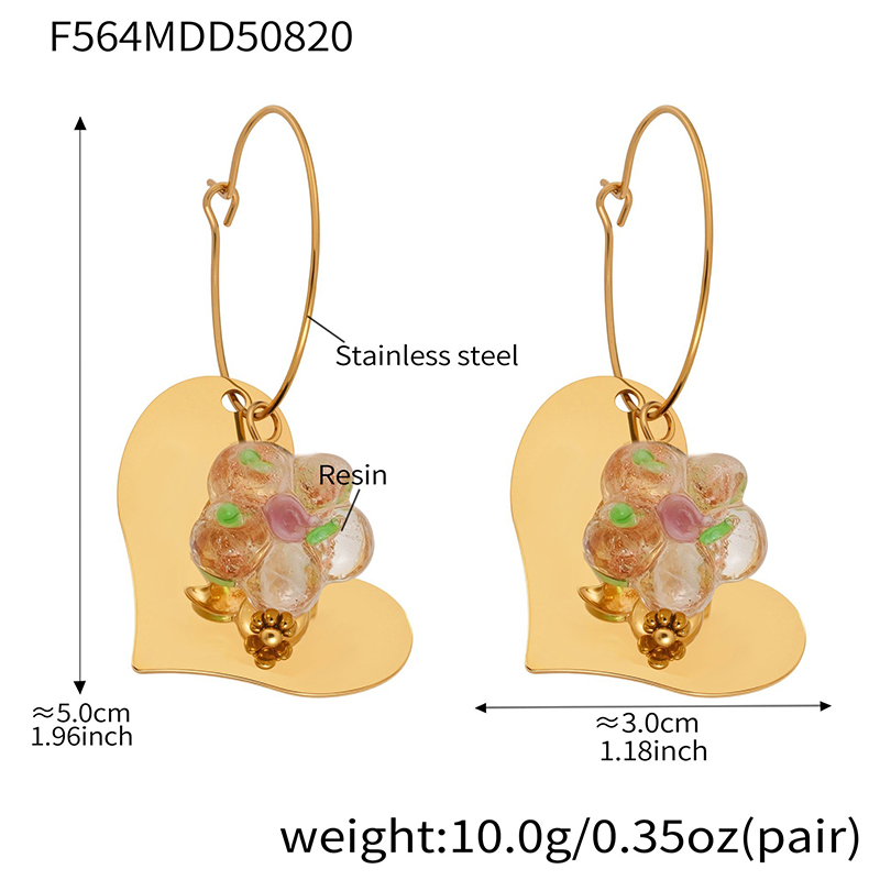 Boucle d'oreille goutte inox, Acier inoxydable 304, avec résine, coeur, Plaqué or 18K, bijoux de mode & styles différents pour le choix & pour femme, plus de couleurs à choisir, Vendu par paire