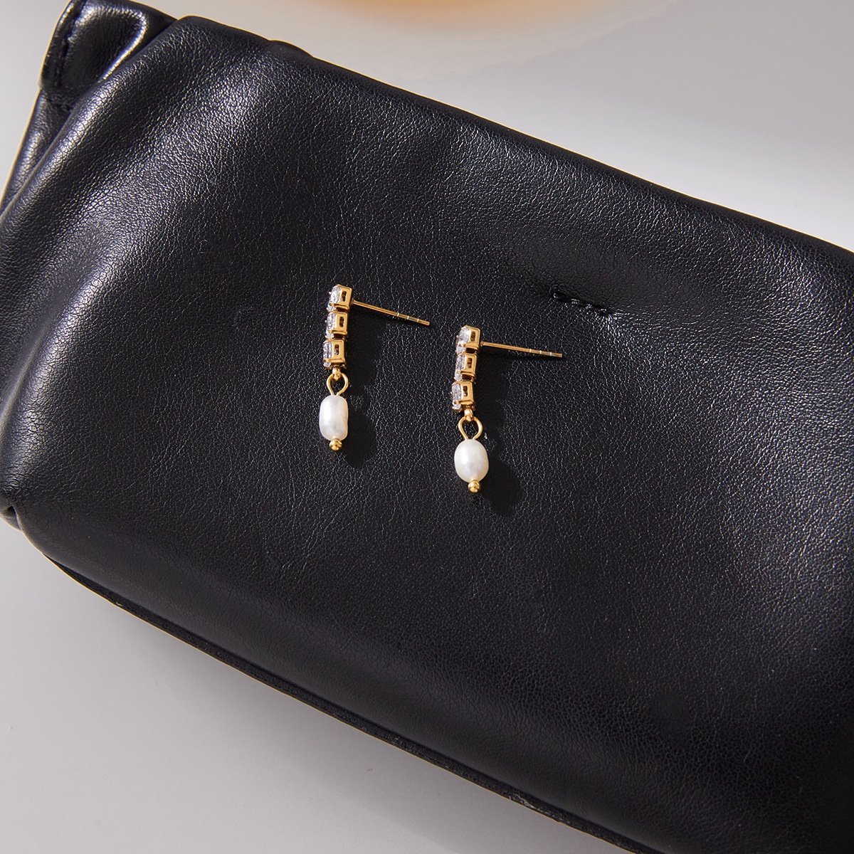 Boucle d'oreille goutte inox, Acier inoxydable 304, avec perle d'eau douce cultivée, Placage de couleur d'or, bijoux de mode & pavé de micro zircon, plus de couleurs à choisir, Vendu par paire