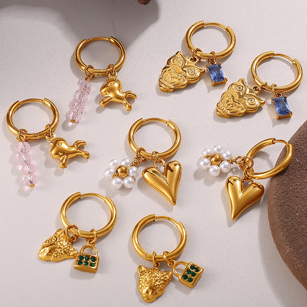 Boucle d'oreille goutte inox, Acier inoxydable 304, Plaqué or 18K, styles différents pour le choix & pour femme & avec strass, Vendu par paire