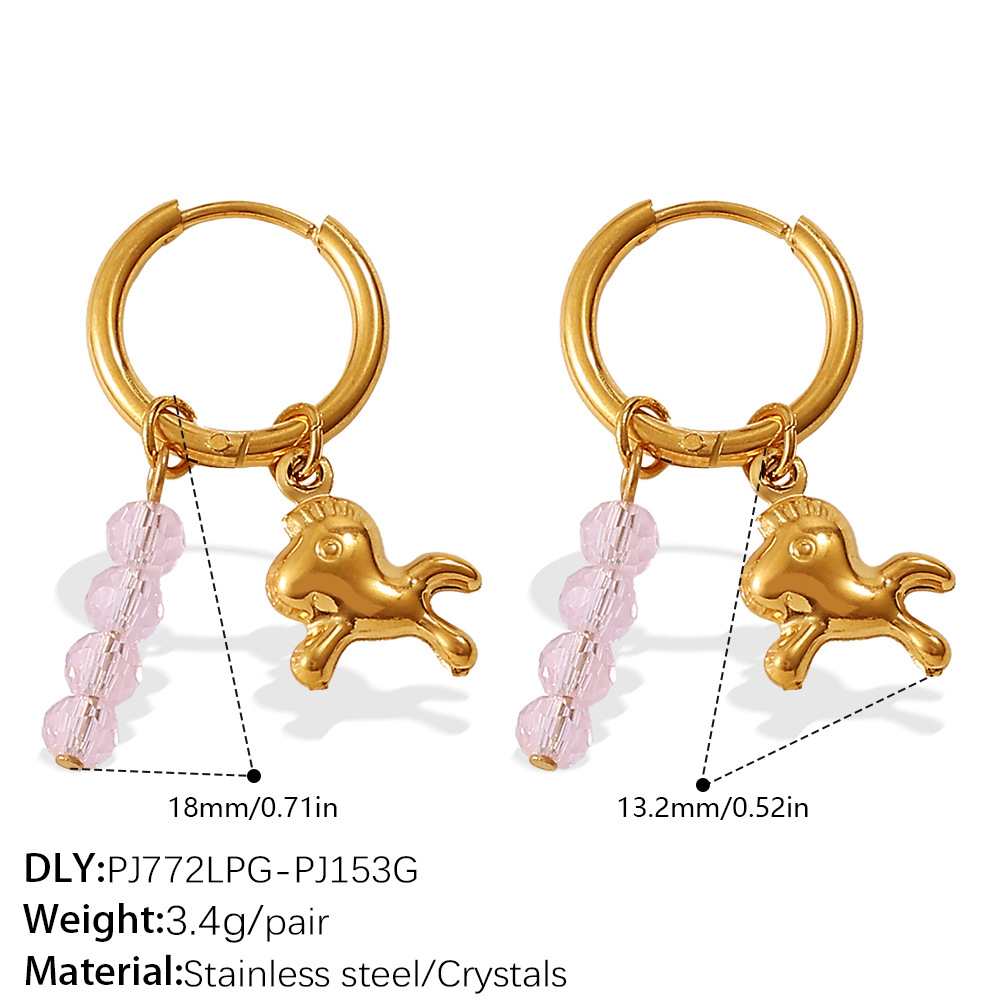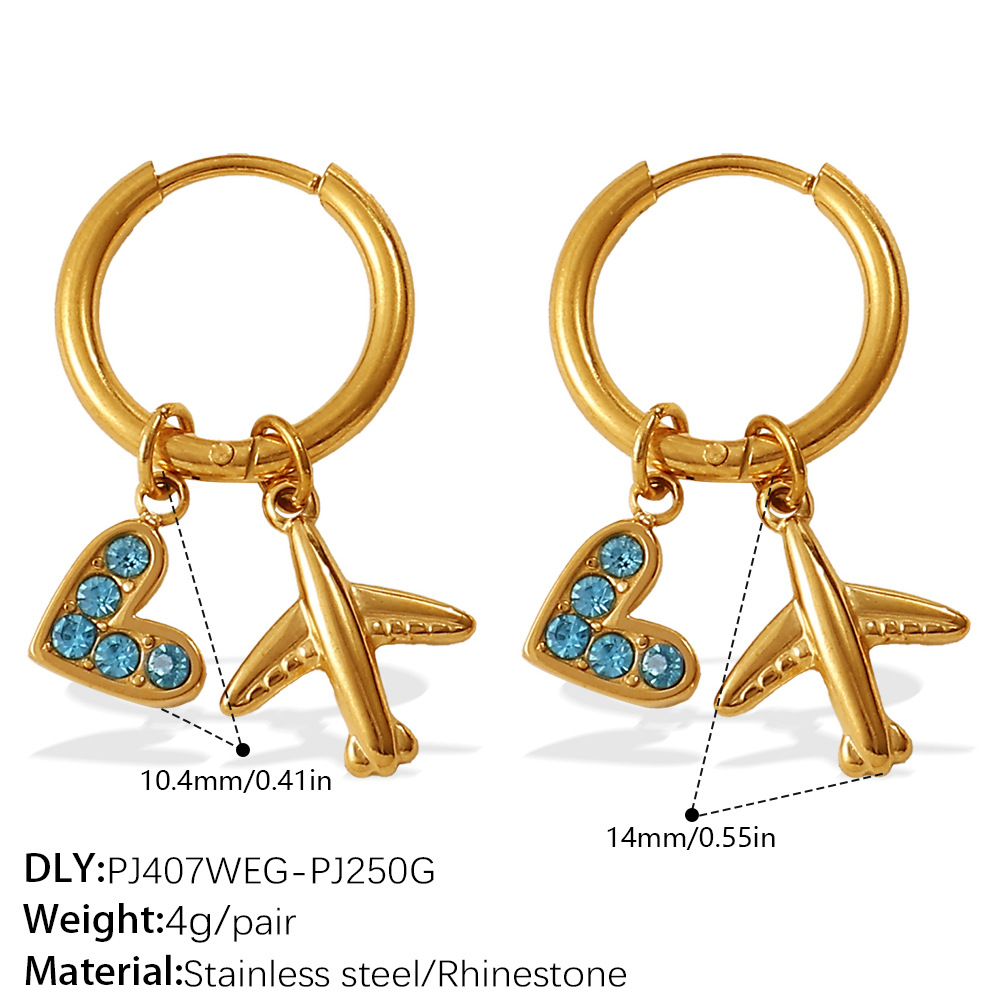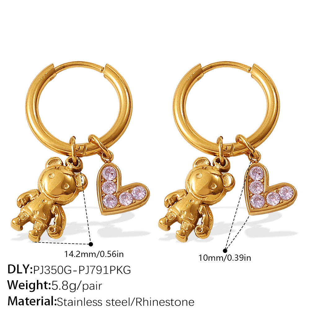 Boucle d'oreille goutte inox, acier inoxydable, avec strass, couleur originale  0.8mm, Vendu par paire