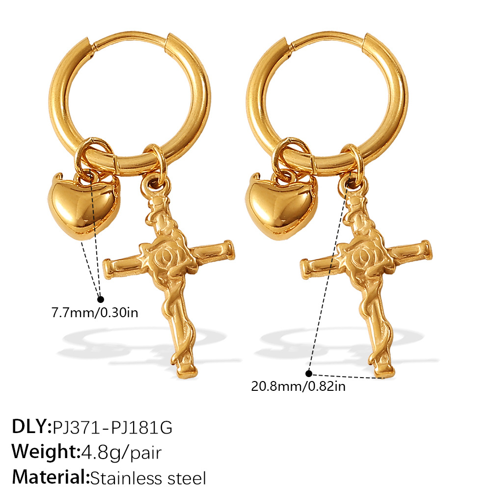 Acier titane Boucle d'oreille goutte, acier inoxydable puce boucle d'oreille, croix, Placage, unisexe, plus de couleurs à choisir, 6mm, Vendu par PC
