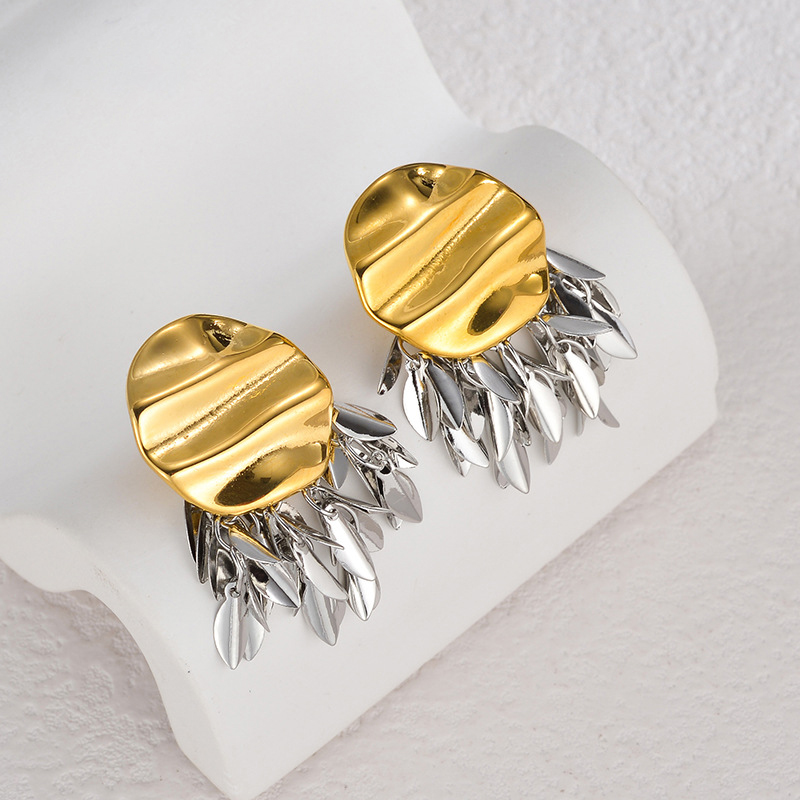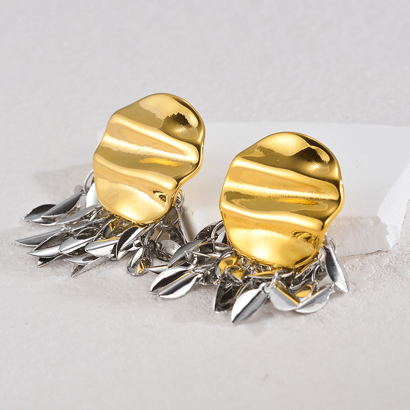 Boucle d'oreille goutte inox, Acier inoxydable 304, Placage, bijoux de mode & pour femme & deux tons, Vendu par paire
