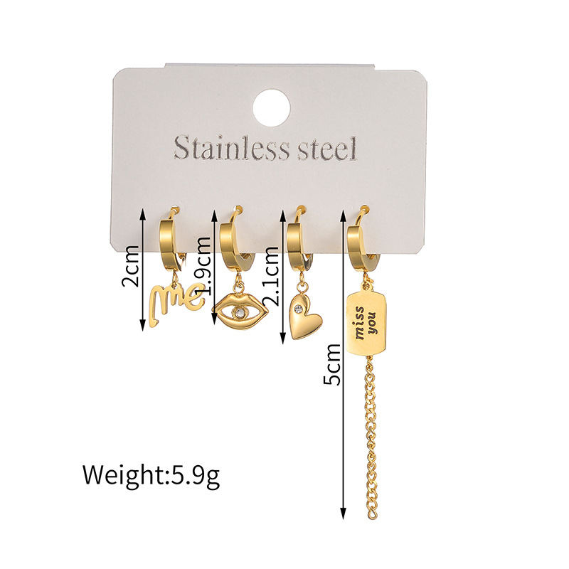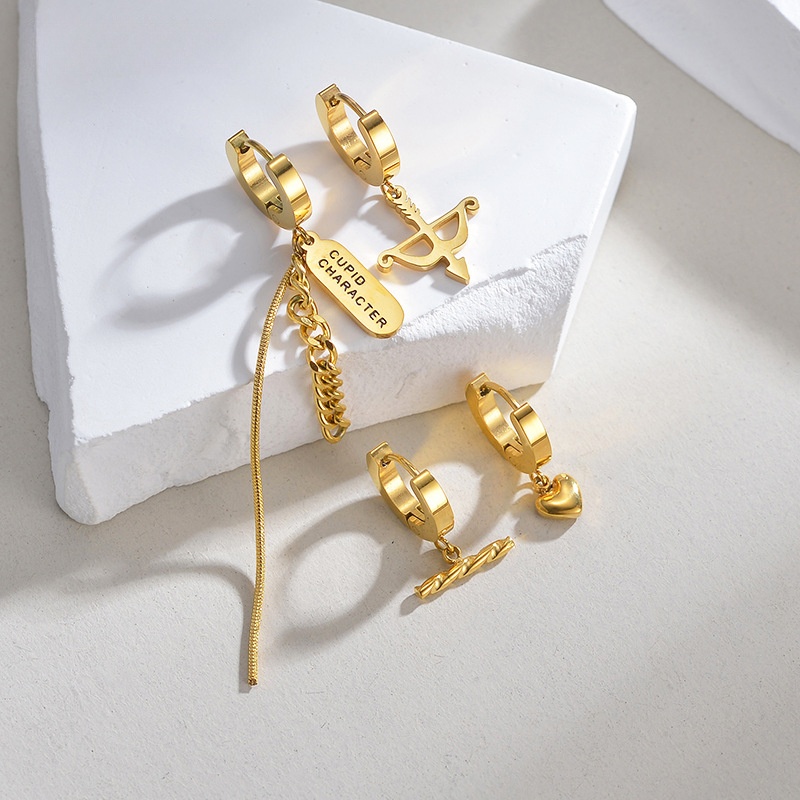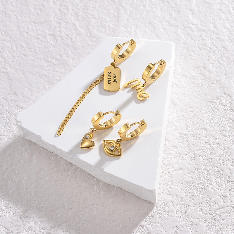 Boucle d'oreille goutte inox, Acier inoxydable 304, Placage, 4 pièces & styles différents pour le choix & pour femme, doré, Vendu par fixé