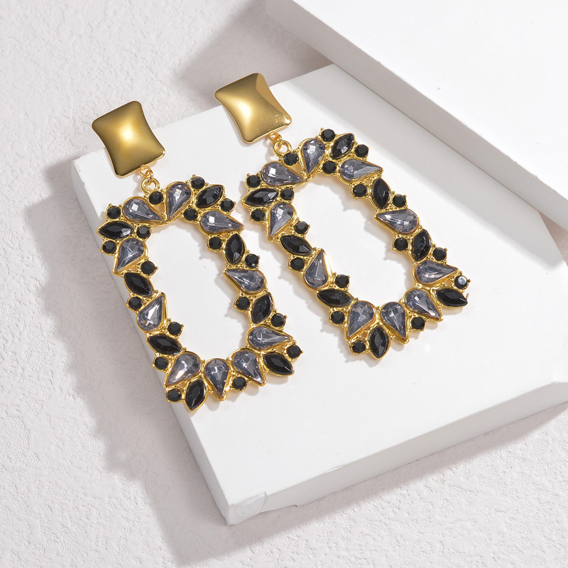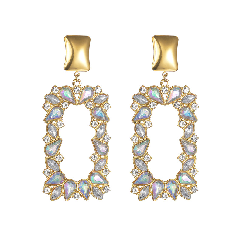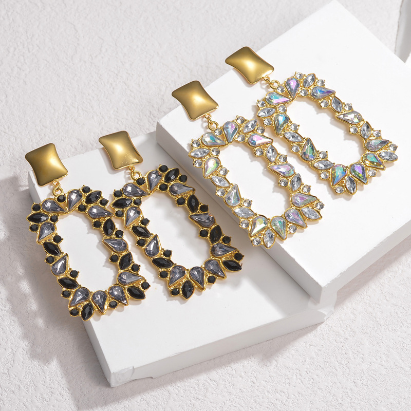 Boucle d'oreille goutte inox, acier inoxydable, acier inoxydable boucle d'oreille crochet, rectangle, pour femme & avec strass, plus de couleurs à choisir Environ 2.6 pouce, Vendu par paire