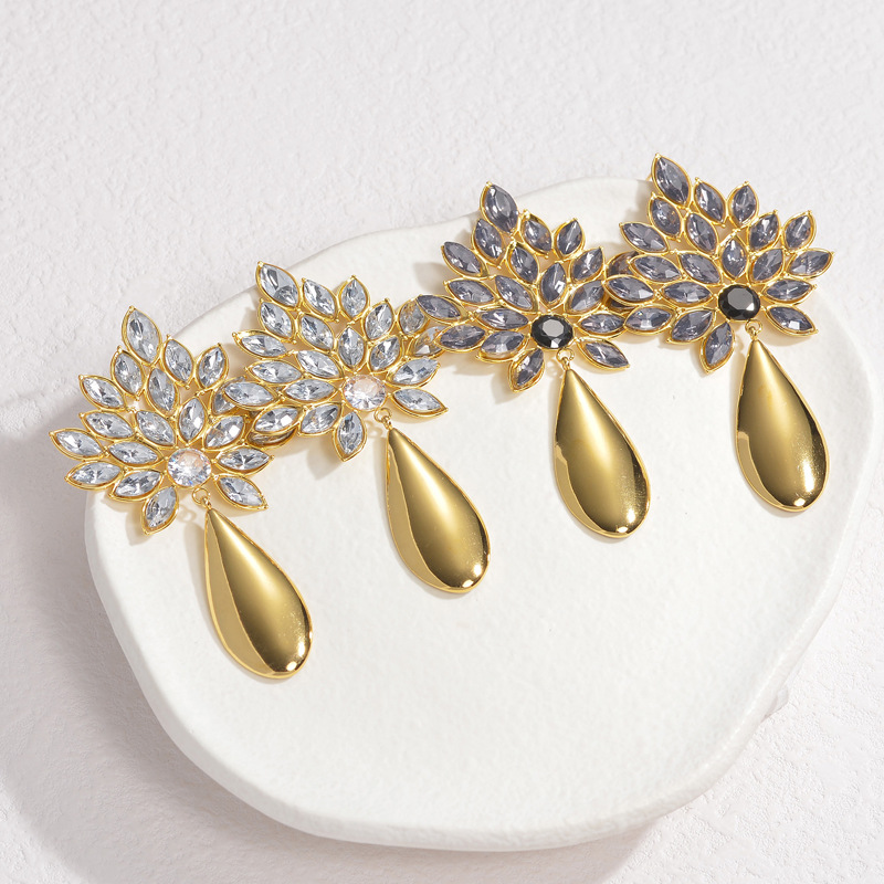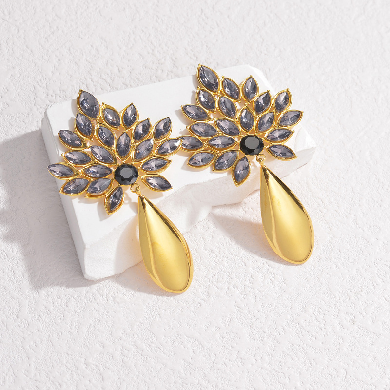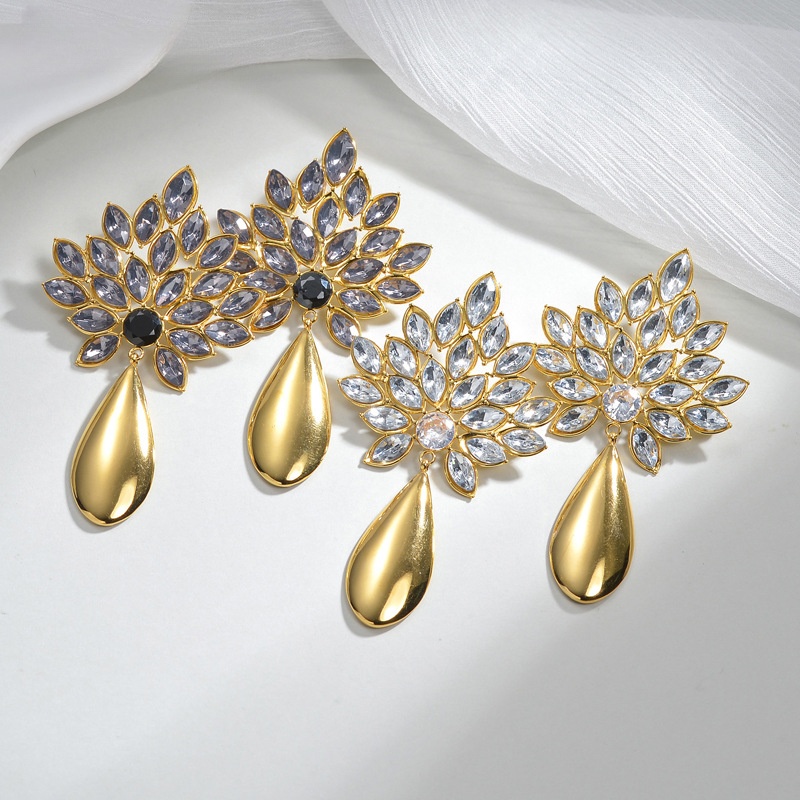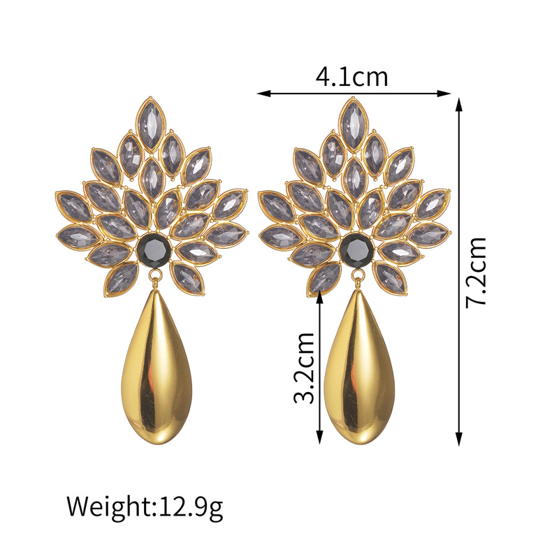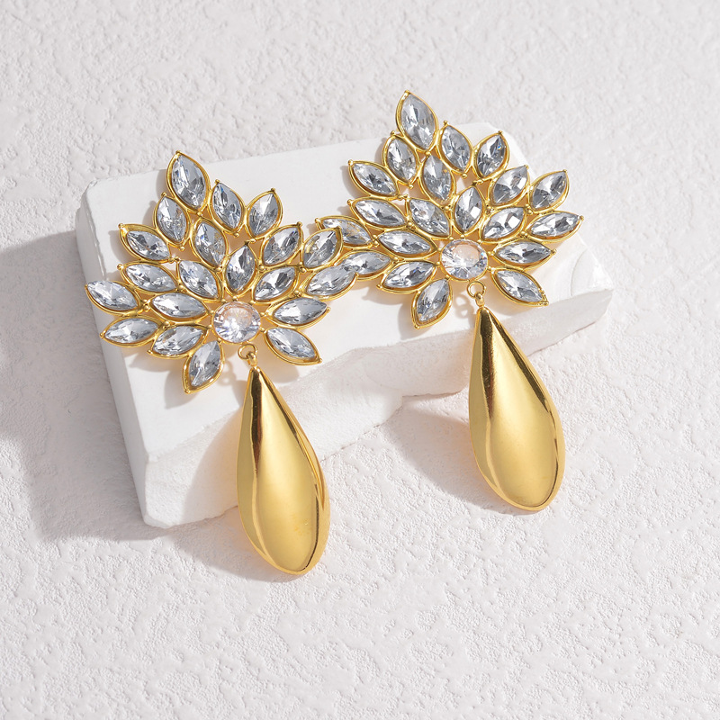 Boucle d'oreille goutte inox, Acier inoxydable 304, Placage, bijoux de mode & pour femme & avec strass, doré, Vendu par paire