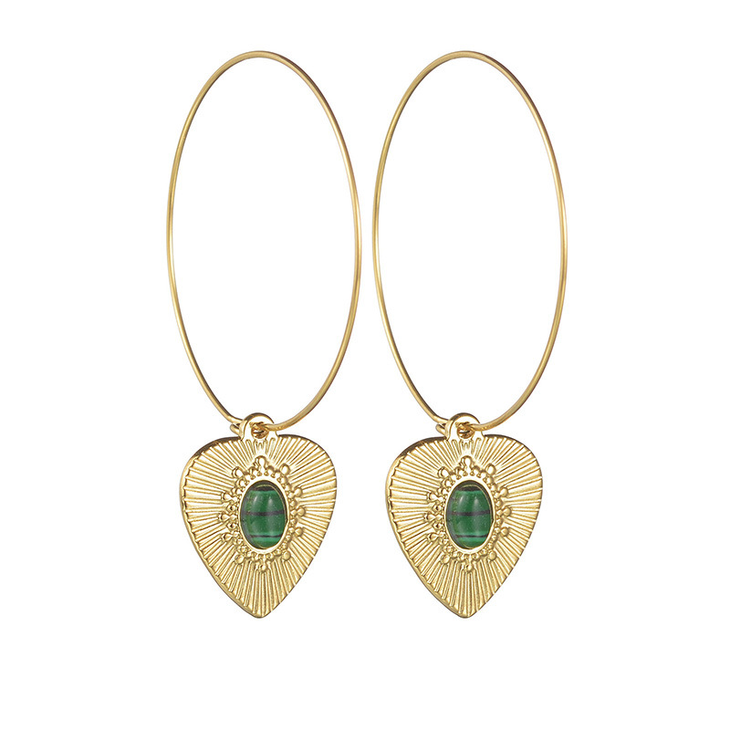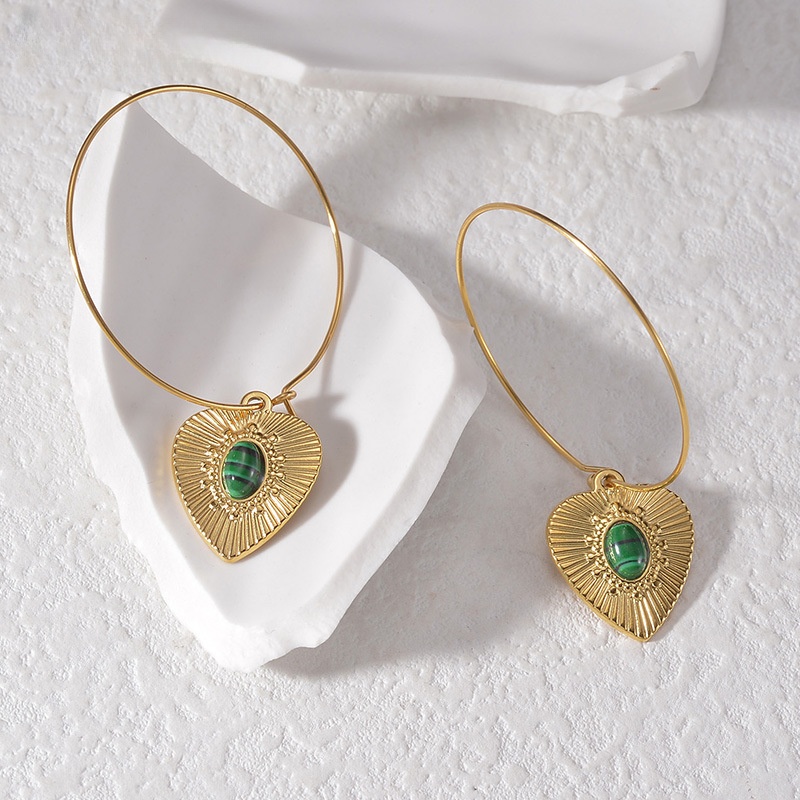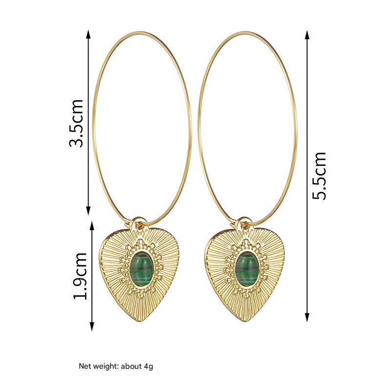 Boucle d'oreille goutte inox, Acier inoxydable 304, avec turquoise synthétique, coeur, Placage, bijoux de mode & pour femme, doré, Vendu par paire