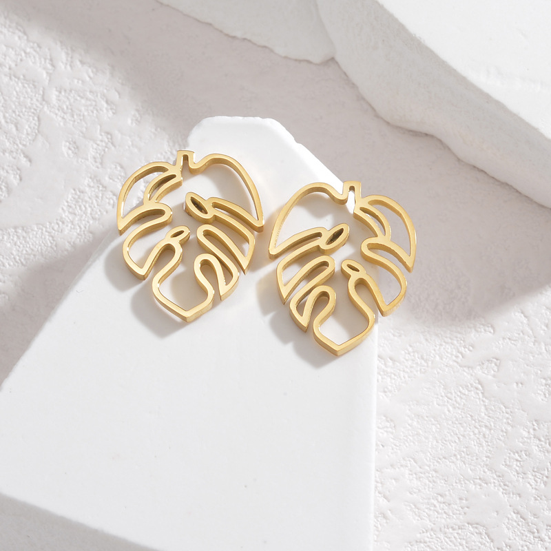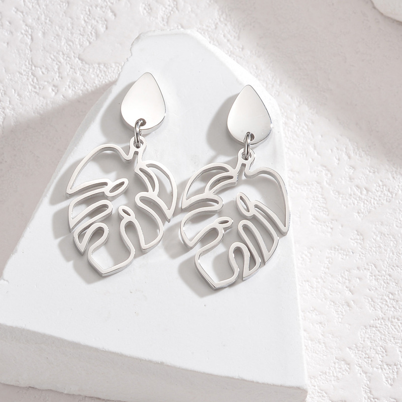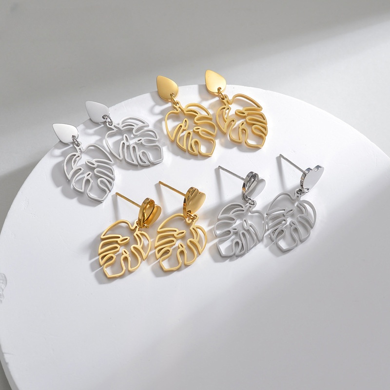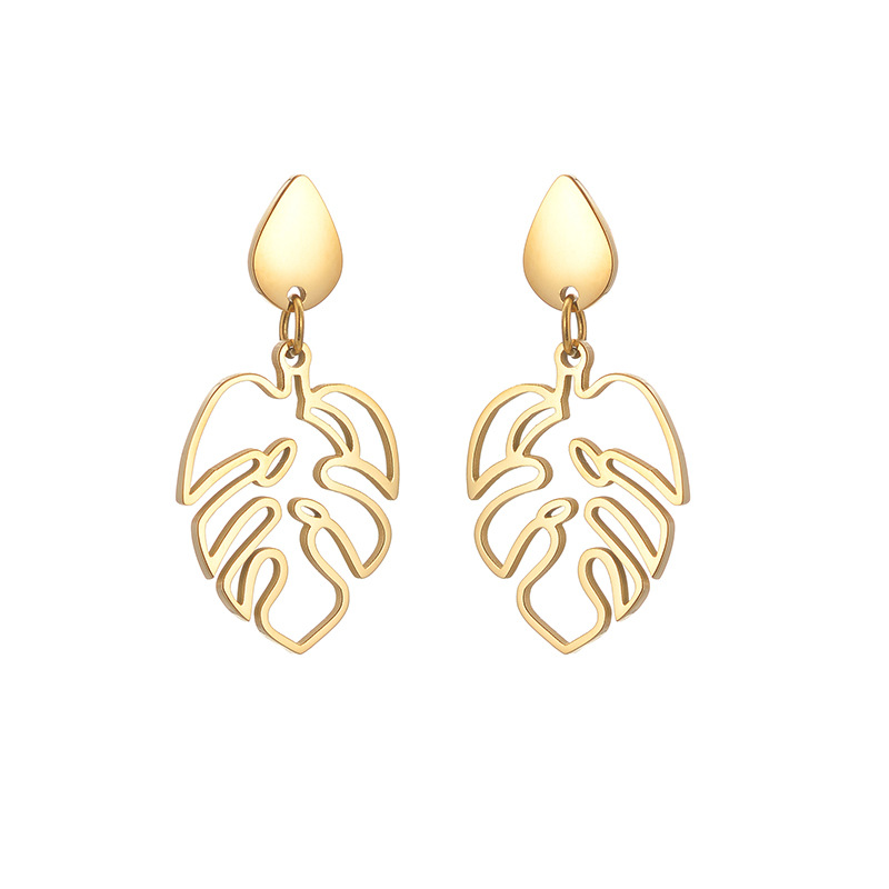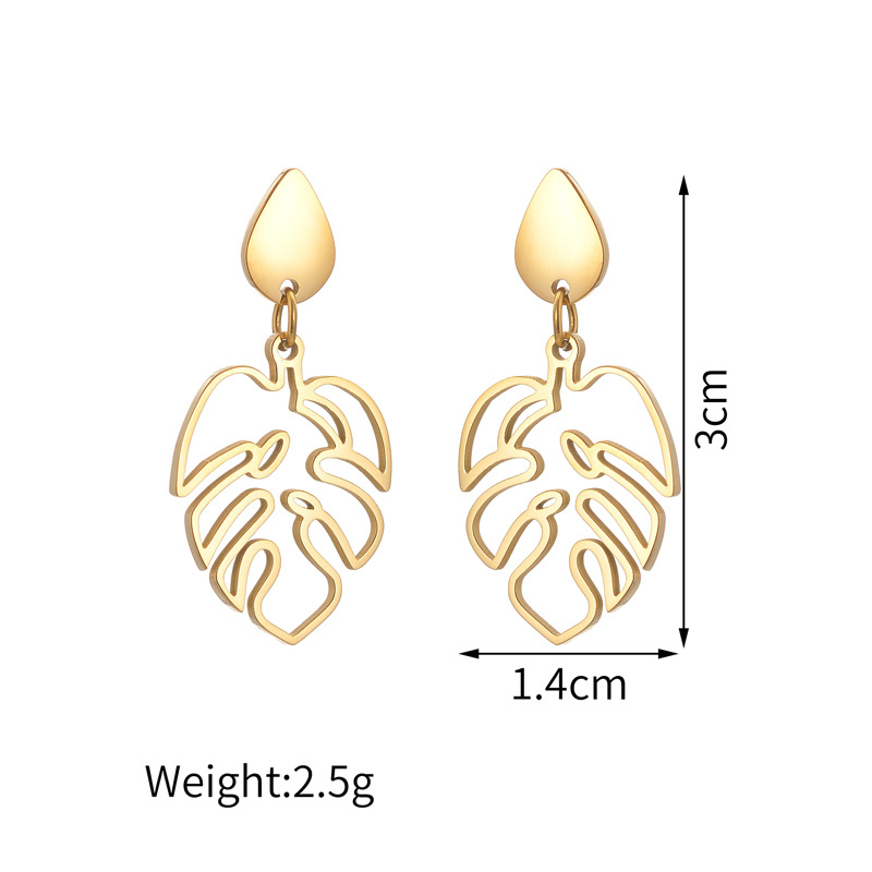 Boucle d'oreille goutte inox, Acier inoxydable 304, feuille, Placage, styles différents pour le choix & pour femme & creux, Vendu par paire
