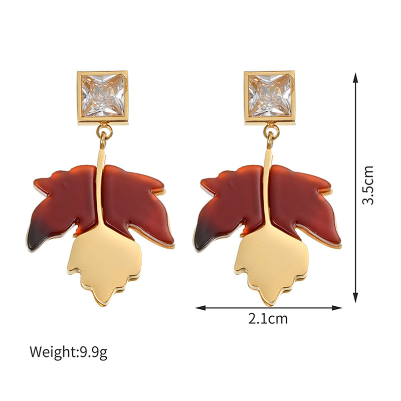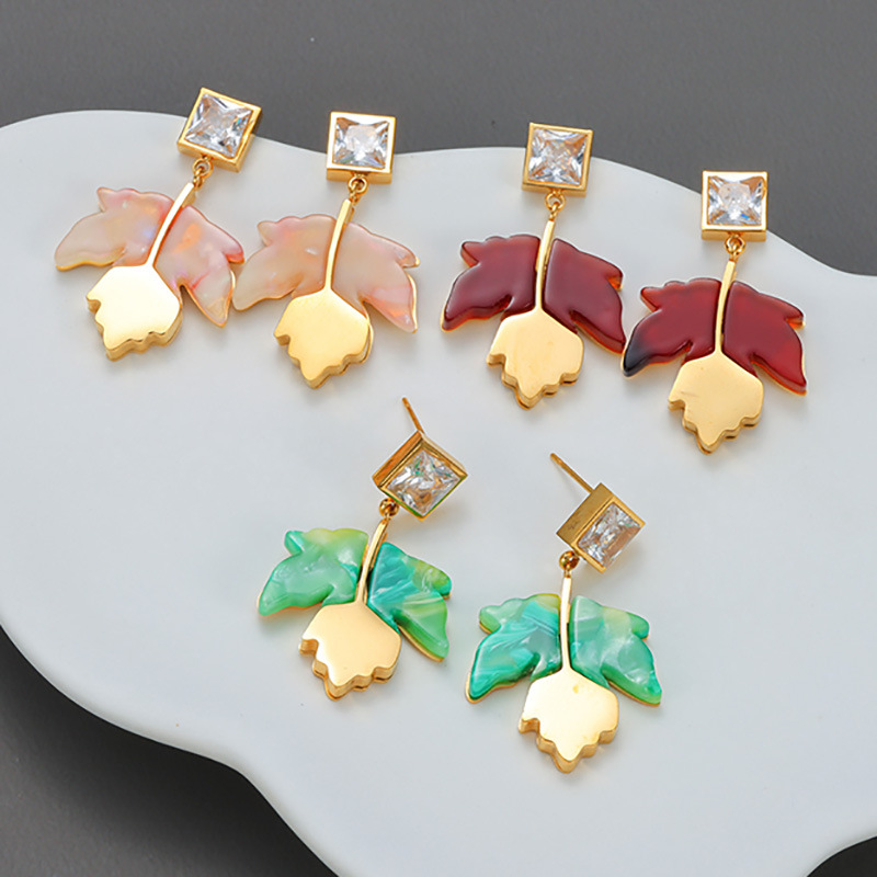 Boucle d'oreille goutte inox, Acier inoxydable 304, avec Acrylique, Feuille d'érable, Placage de couleur d'or, bijoux de mode & pour femme & avec strass, plus de couleurs à choisir, Vendu par paire
