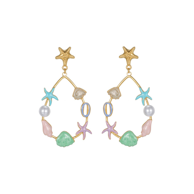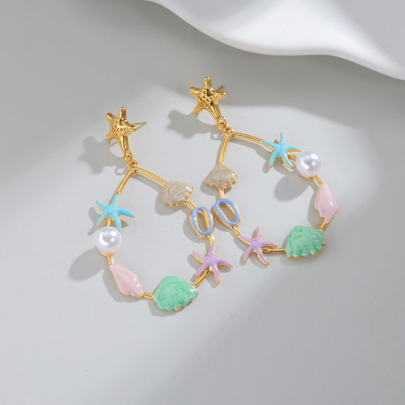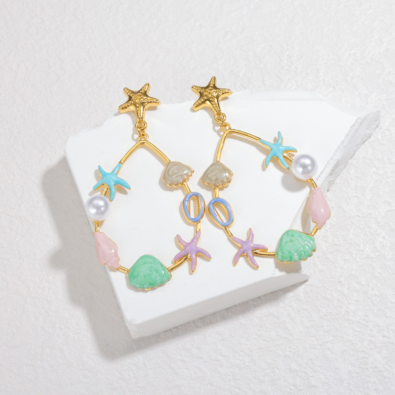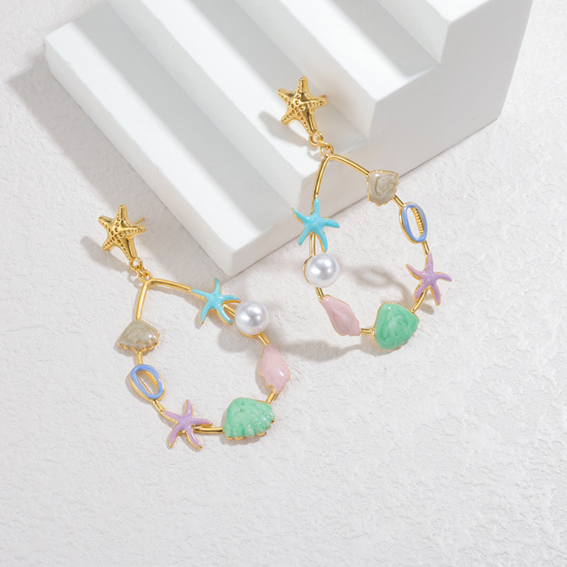 Boucle d'oreille goutte inox, Acier inoxydable 304, avec perle de plastique, Placage, bijoux de mode & pour femme & émail, doré, Vendu par paire