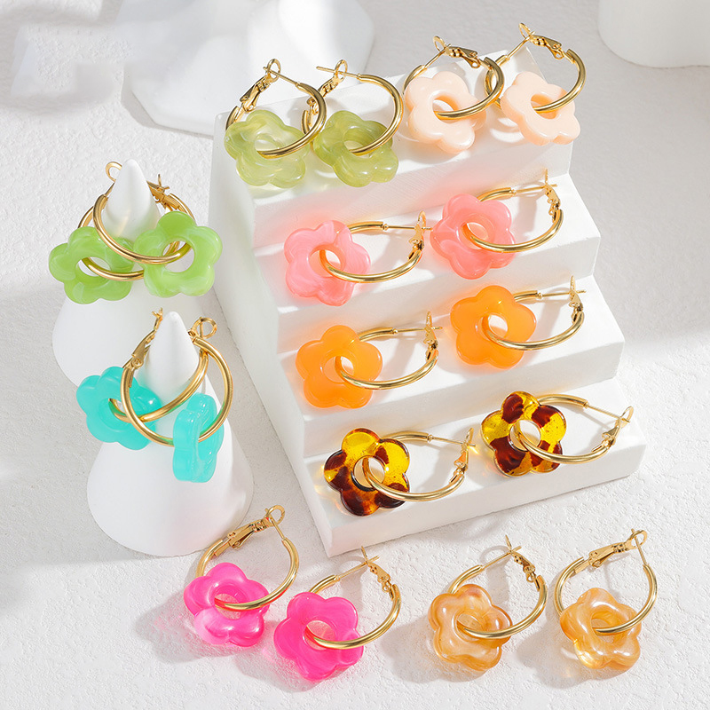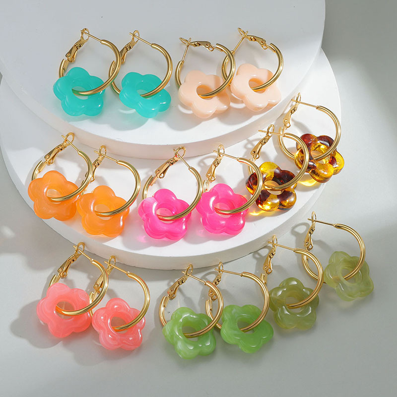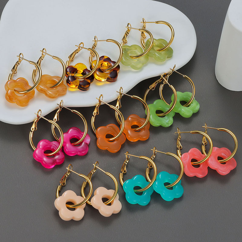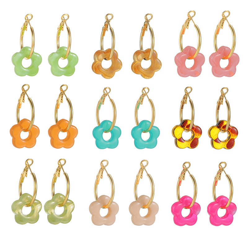 Boucle d'oreille goutte inox, Acier inoxydable 304, avec résine, Placage, bijoux de mode & pour femme & creux, plus de couleurs à choisir, Vendu par paire