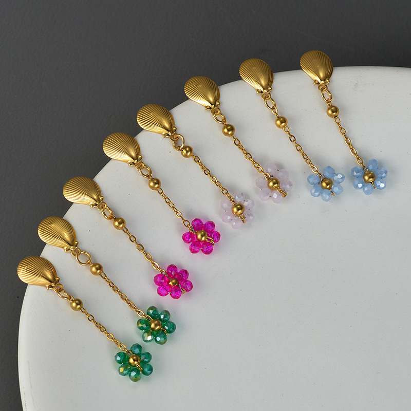 Boucle d'oreille goutte inox, Acier inoxydable 304, avec cristal, Placage de couleur d'or, bijoux de mode & pour femme, plus de couleurs à choisir, Vendu par paire